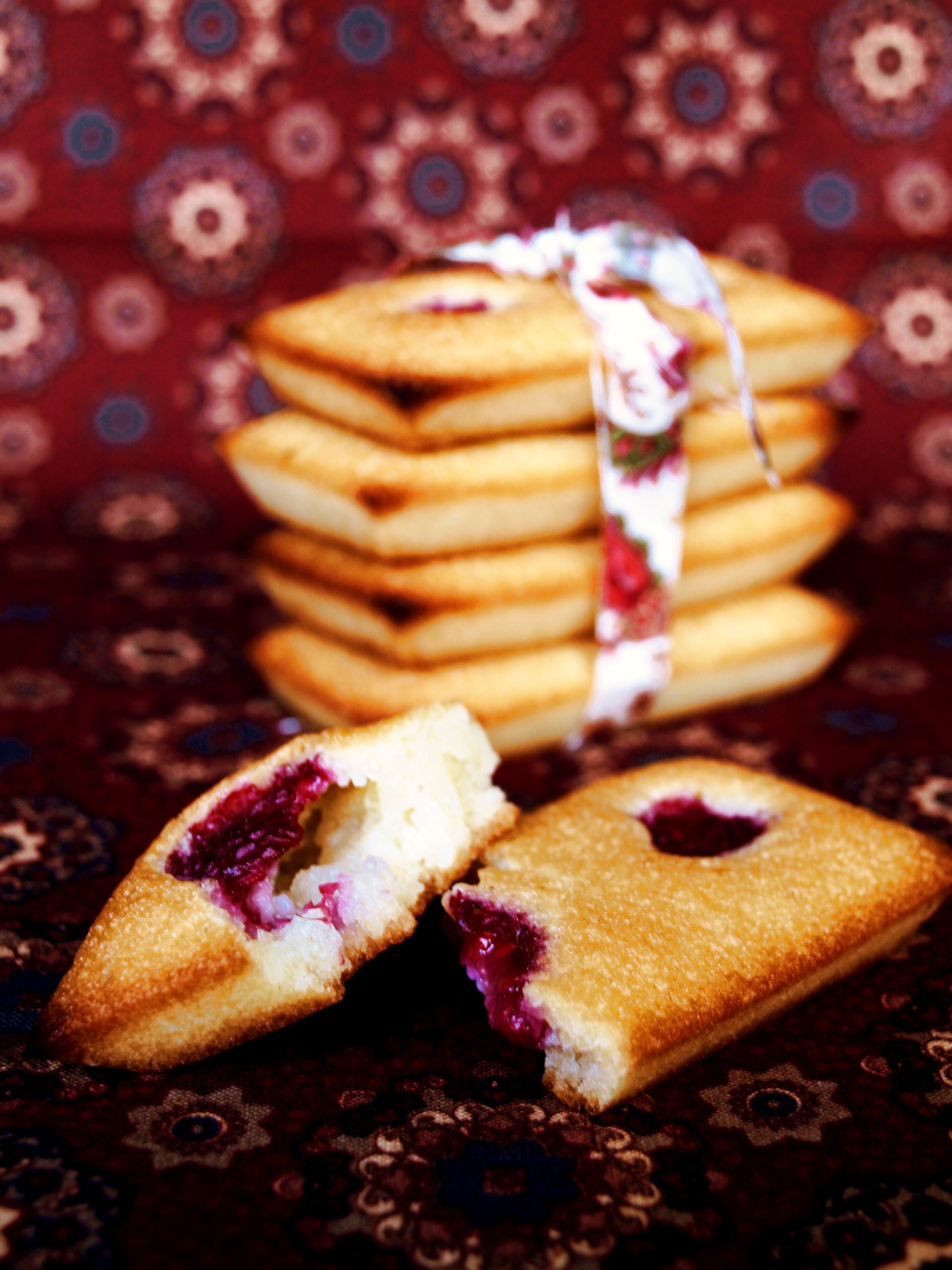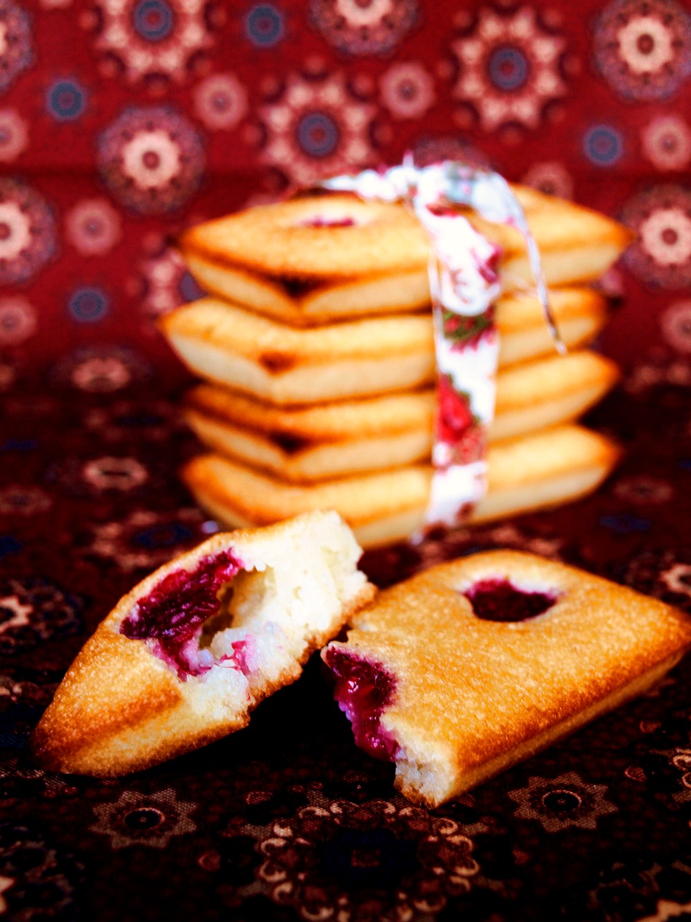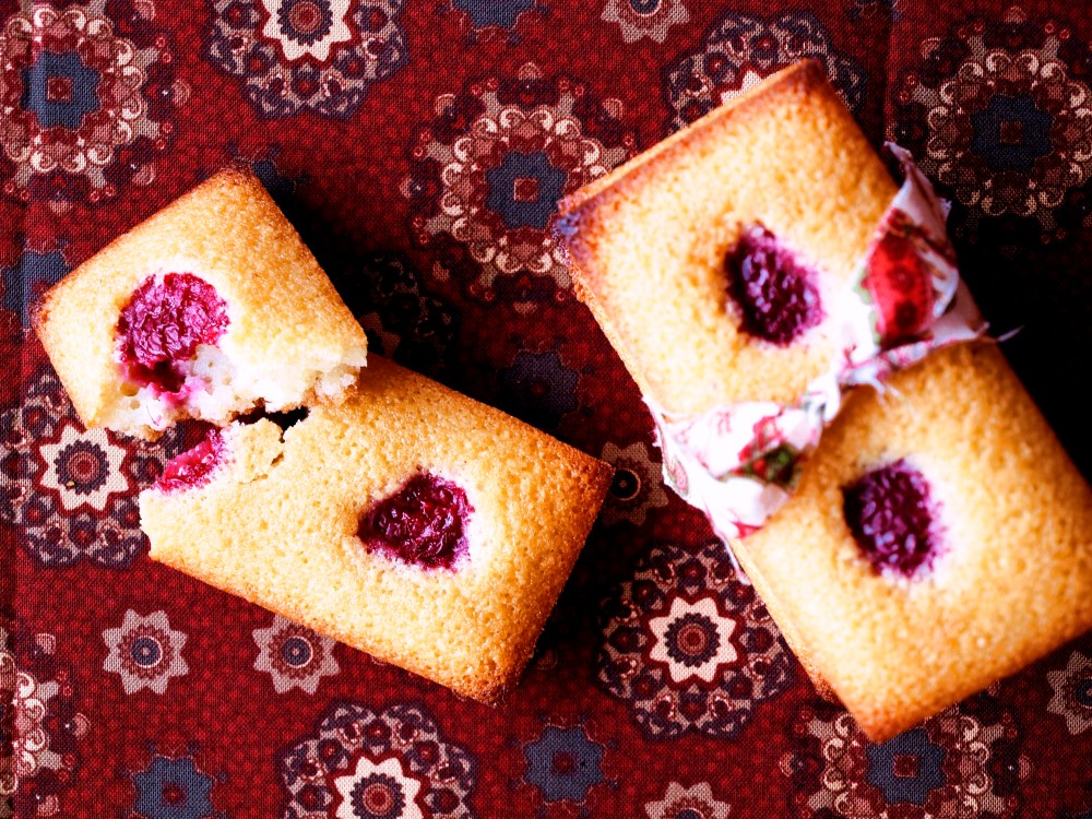 ·    Cho hỗn hợp trên vào khuôn financier, ấn nhẹ 2 quả mâm xôi vào từng bánh và nướng khoảng 10-15 phút.