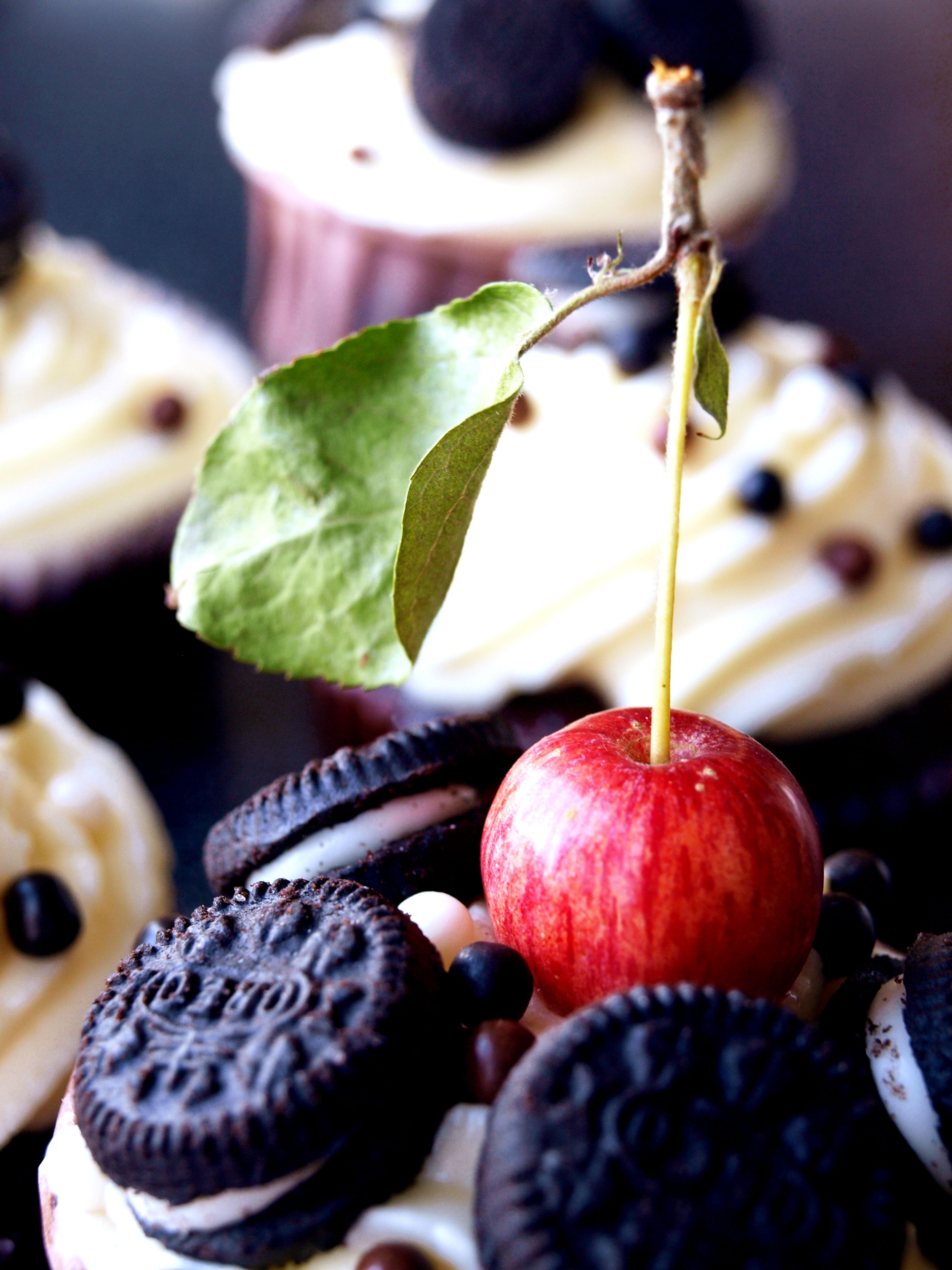 Hôm nọ đi chợ, tự nhiên tìm thấy mini Oreo, nghĩ ngay đến việc phải làm loại bánh này! Thêm 1 vài quả táo dại hái ở vườn nhà 1 người bạn nữa, làm thành 1 cái cupcake cái gì cũng mini be bé xinh xinh hì hì!