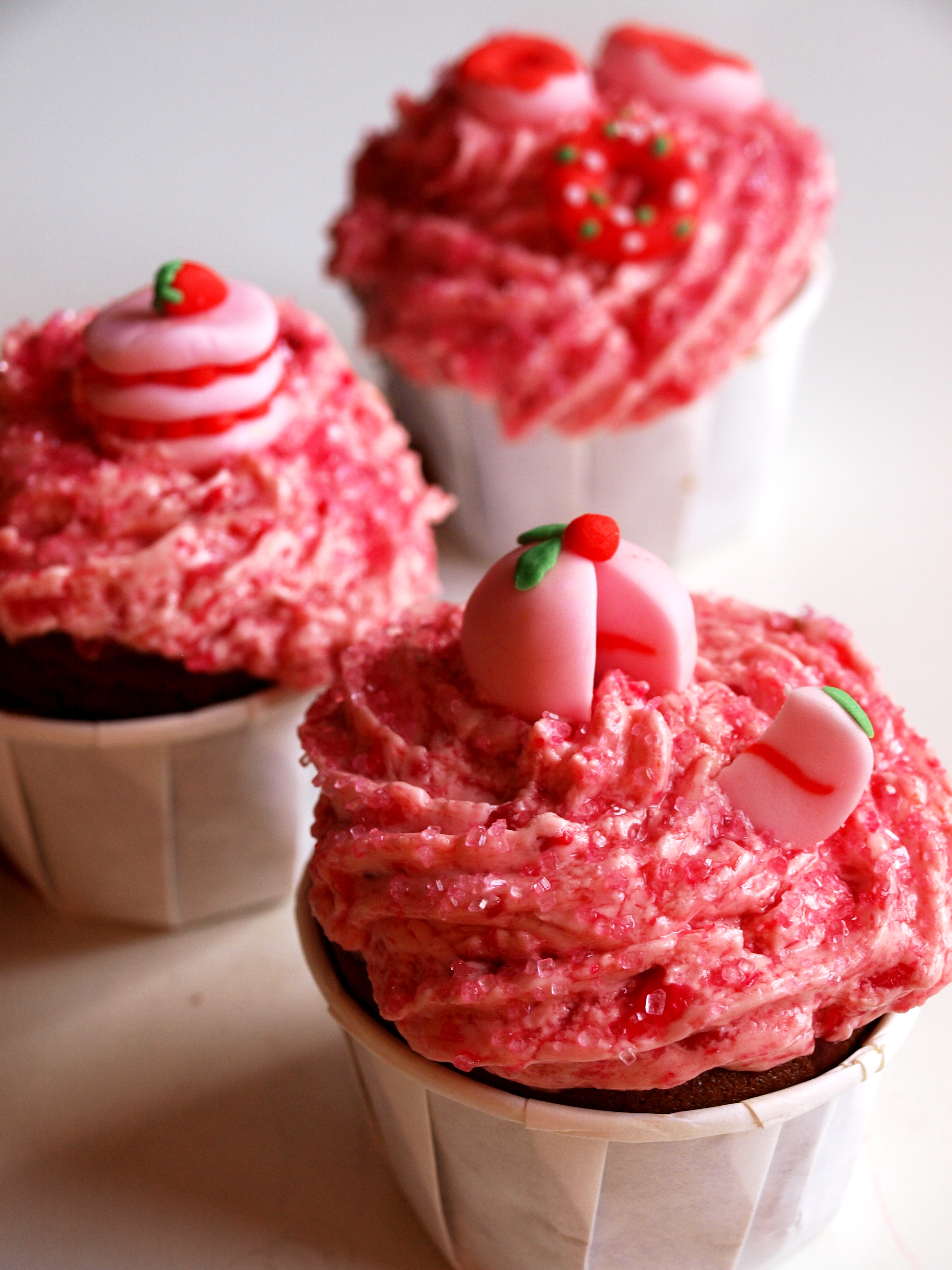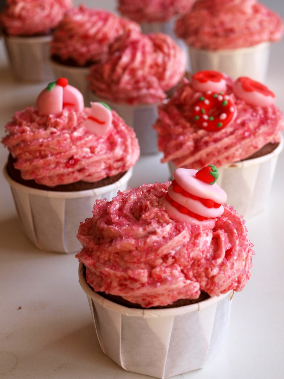 - Khi các nguyên liệu đã được trộn đều thành 1 hỗn hợp kem sánh đặc, dùng đui trang trí lên bánh cupcake đã để nguội. Có thể đặt lên 1 quả cerise hoặc dùng fondant để trang trí.