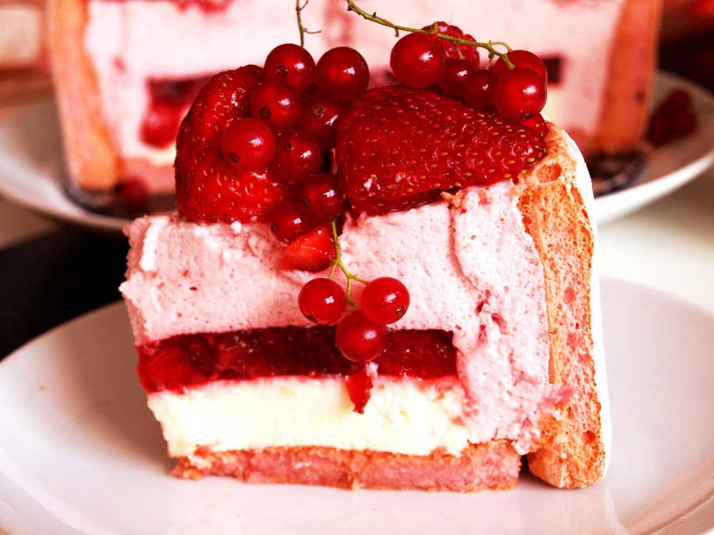 Bánh mousse lần này có 3 lớp, đọc qua công thức sẽ thấy có vẻ dài và cầu kì, nhưng thực ra đều là các bước lặp đi lặp lại, không hề quá phức tạp, cũng không hề đòi hỏi kĩ năng gì cần phải luyện tập nhiều cả. Riêng có phần bánh xếp làm thành bánh, mình không biết ngoài ở Pháp ra có thể tìm thấy loại bánh biscuits hồng của vùng Reims ở đâu khác không? Loại bánh quy này, cùng với champagne, là 2 đặc sản của vùng Reims, 1 vùng nằm ở phía đông bắc nước Pháp. Loại bánh này được làm ra lần đầu tiên vào năm 1690, ý tưởng bắt nguồn từ việc những người thợ làm bánh không muốn lãng phí hơi nóng của lò sau khi nướng. Họ đã nghĩ ra 1 công thức bột, mà sau khi nướng qua 1 lửa, bánh sẽ tiếp tục được sấy khô ở trong lò đã tắt cho đến khi lò nguội. Đó chính là nguồn gốc của tên gọi bis-cuit, “bis” là lại 1 lần nữa chắc mọi người đã biết, “cuit” là nướng, làm chín, nghĩa là nướng 2 lần! Ban đầu bánh chỉ được làm ra có màu trắng, sau này được nhuộm thành màu hồng bằng phẩm màu tự nhiên đỏ carmin (phẩm này mình vẫn dùng thường xuyên để nhuộm màu 1 vài phần trng các tế bào sống trước khi quan sát qua kính hiển vi, vì là phẩm màu tự nhiên nên sẽ không độc hại và làm chết tế bào, quan sát được tế bào sống mới biết được các quy trình hoạt động của nó ra sao :), hihi lan man lạc đề quá). Bánh quy vùng Reims, nhờ 2 lần nướng, sẽ vừa giòn tan khi chỉ nhón 1 miếng bánh ăn vặt, vừa mềm ẩm rất hấp dẫn mà vẫn giữ được cấu trúc, không bị nát khi nhúng vào champagne, rượu vang đỏ hay thấm syrup để làm charlotte (bánh mousse được bao bọc xung quanh bằng 1 lớp bánh biscuit được gọi là charlotte).