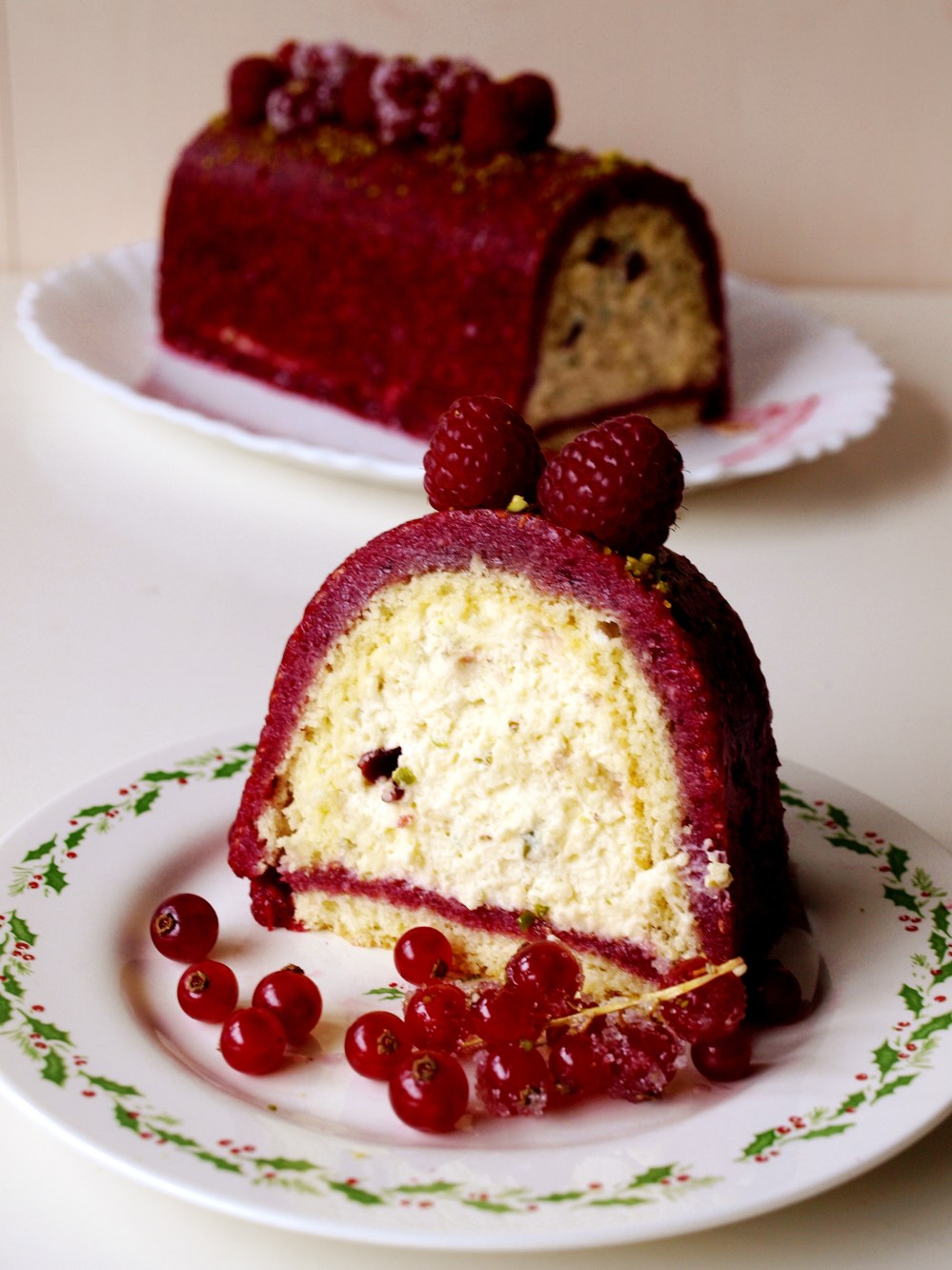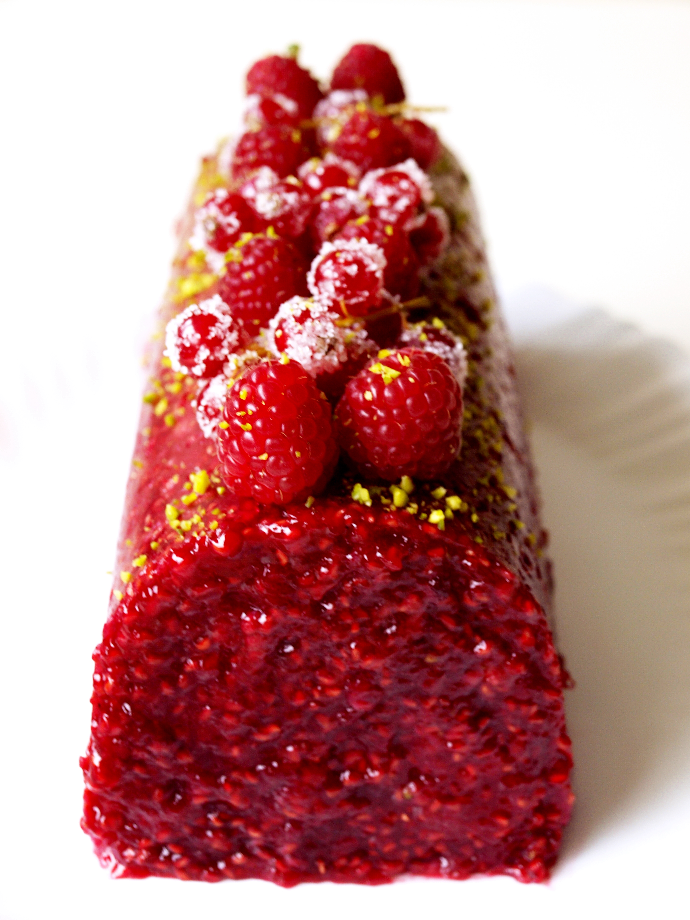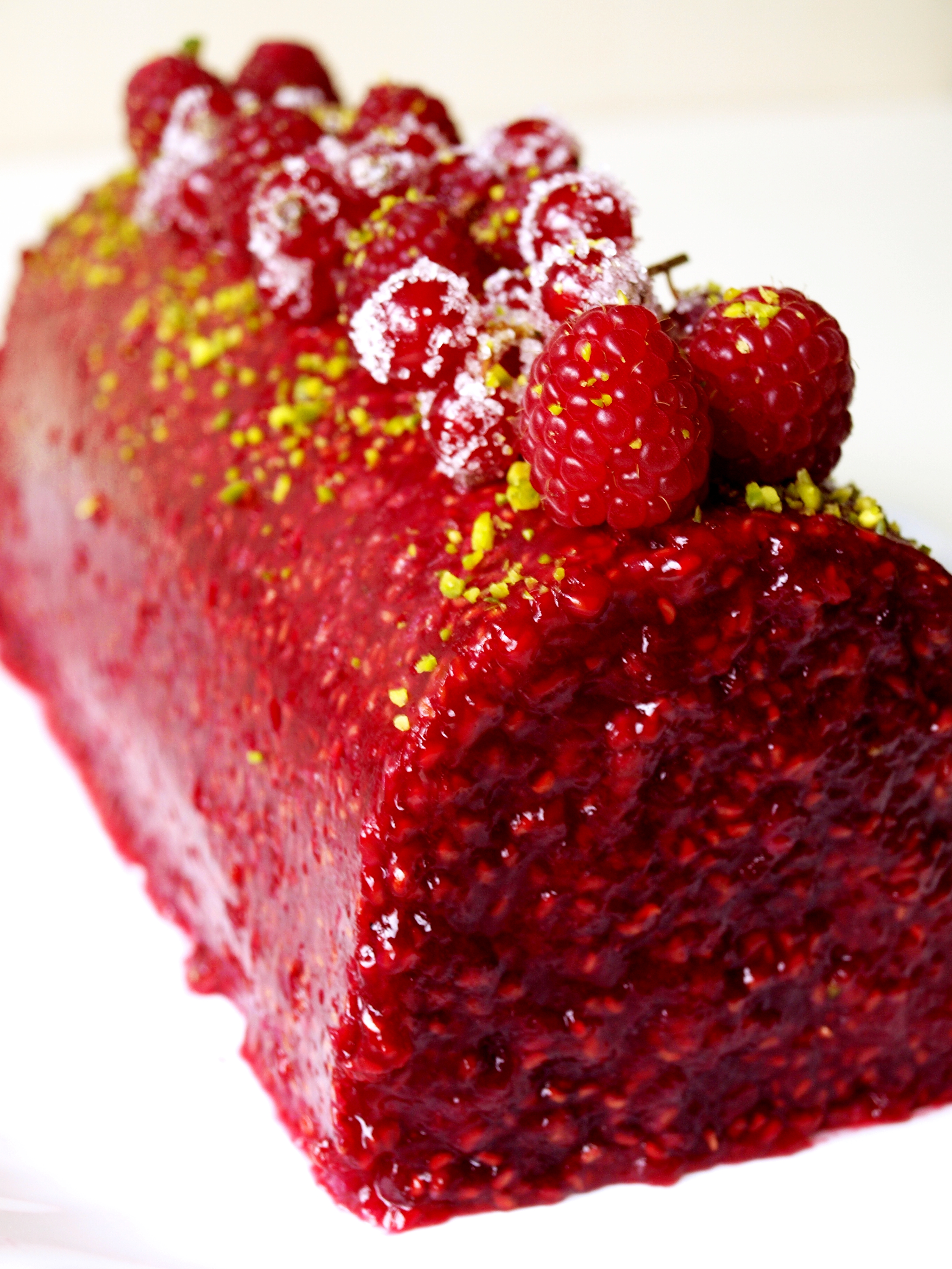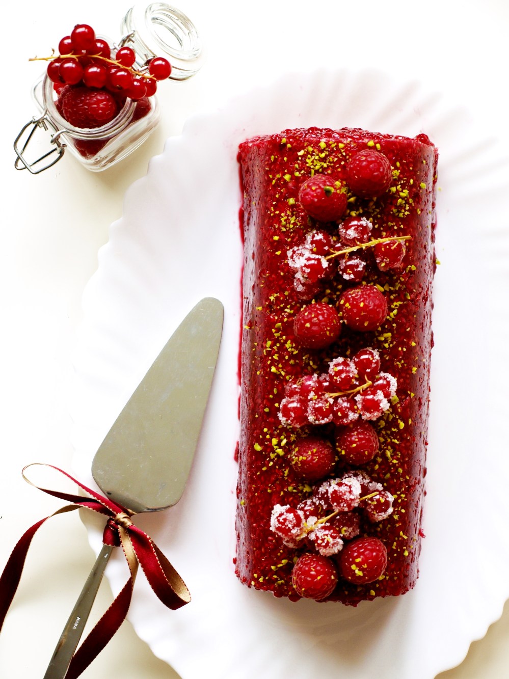 Bánh buche mâm xôi và mousse nougat (Raspberry and nougat mousse yule log cake)
