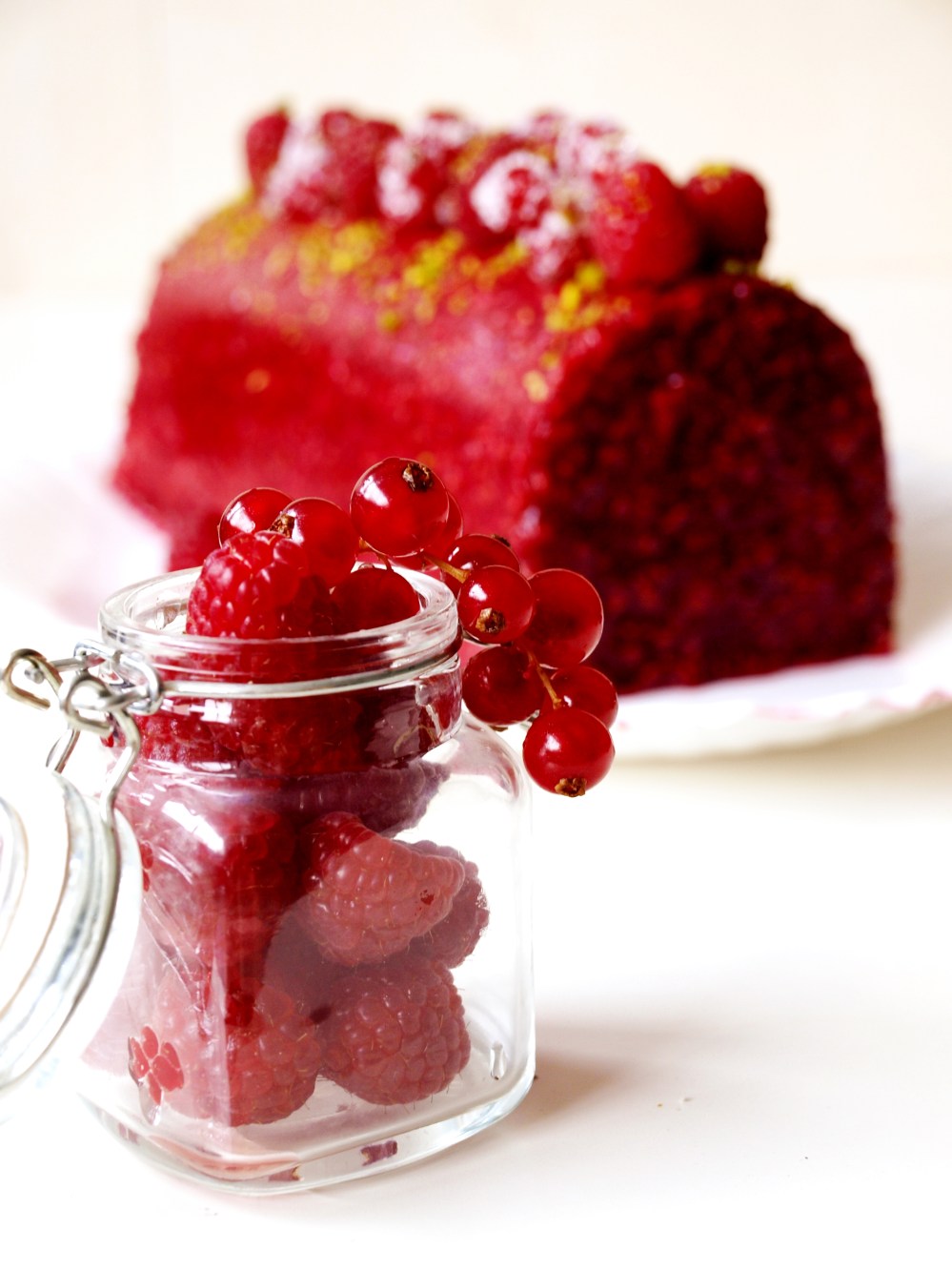 • Trang trí với hoa quả tươi lăn qua đường hạt to và rắc thêm chút pistachio đập vụn.