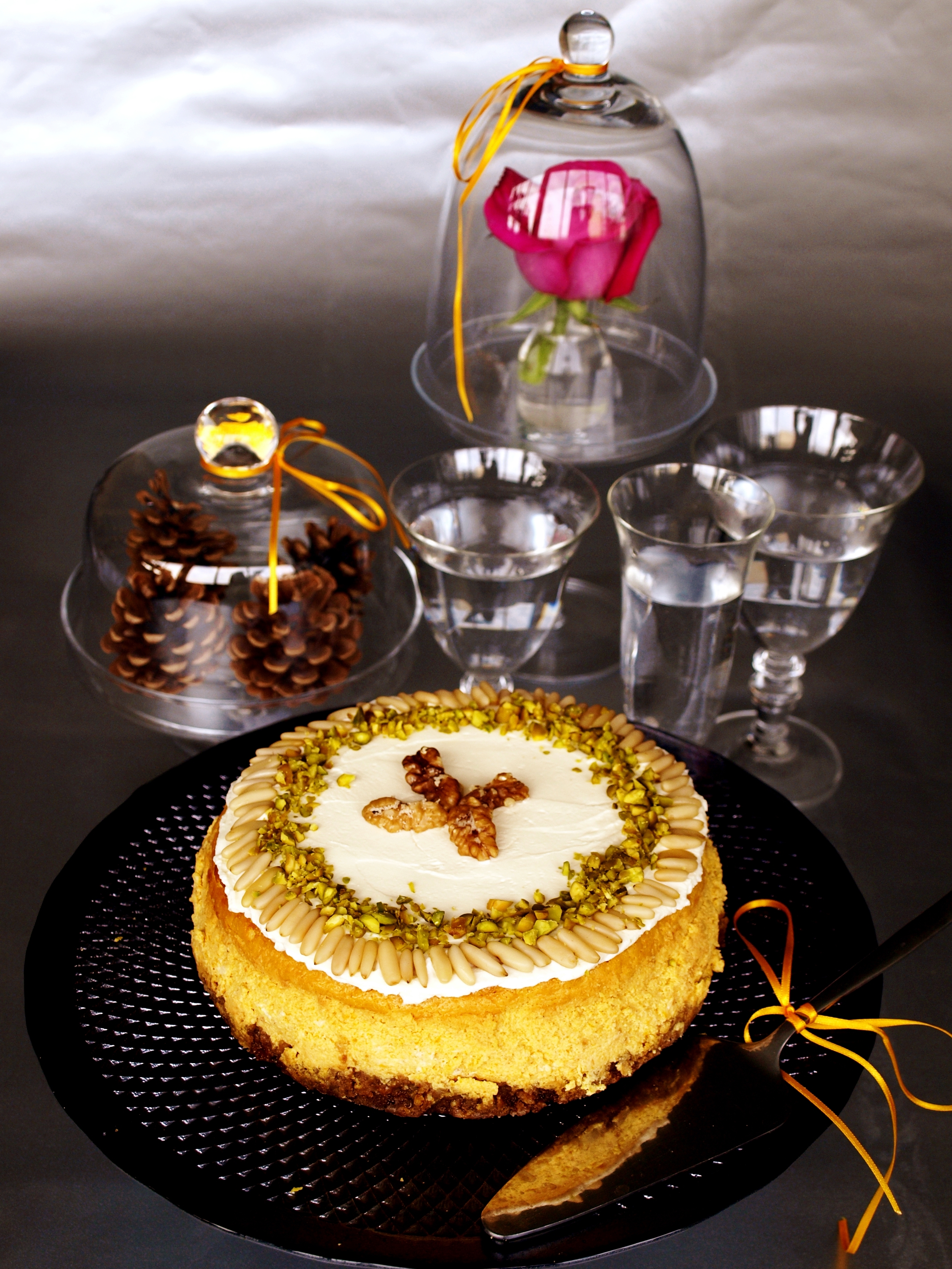 Từ bé đến giờ phải nói là số lần mình ăn món ăn có bỉ đỏ là vô cùng ít, ít đến mức mình chưa có khái niệm gì mấy về các món ăn có bí đỏ. Cho đến khi hè vừa rồi về Việt Nam, 1 buổi trưa trời rất nóng nực, mẹ nấu cho mình 1 bát canh bí đỏ với tôm khô ngon ngọt đến ngỡ ngàng luôn, thế là mình yêu luôn bí đỏ từ đấy. Sau đó cũng không nhớ là vì sao mà suốt cả hè dù mình nhắc mấy lần mà mẹ chẳng nấu lại món đấy lần nào nữa. Bí đỏ cũng rơi vào quên lãng cho đến mùa thu năm nay, đi chợ mình thấy bí đỏ được bày đầy trên các gian hàng, từng quả bí đỏ béo tròn múp míp hay đã cắt thành từng miếng như vầng trăng khuyết màu vàng cam rực lên vô cùng hấp dẫn. Một hôm sang nhà bạn ăn cơm, mình thử mua 1 miếng về nấu canh, dù chưa nấu bao giờ nhưng cứ nhớ theo hương vị món ăn mẹ nấu mà tiến hành, bát canh bí đỏ ngọt lịm với tôm khô, màu vàng tươi làm cho bàn ăn trở nên cuốn hút hẳn lên. Thế là từ đấy bí đỏ xuất hiện thường xuyên trong bữa ăn nhà mình, rồi 1 ngày đẹp trời, lại quyết định làm 1 món bánh nào đó với bí đỏ. Nhân dịp creamcheese Philadelphia bắt đầu được bày bán ở Pháp (không còn phải khuân cả vali creamcheese từ Đức về mà cứ thấp thỏm, nơm nớp lo bị tịch thu hay phải ngồi ăn bằng hết ở sân bay nữa :)), mình chọn làm cheesecake bí đỏ, cũng là để tạm biệt 1 mùa thu nữa ở Paris vì trời dường như đã bắt đầu sang đông rồi đấy!