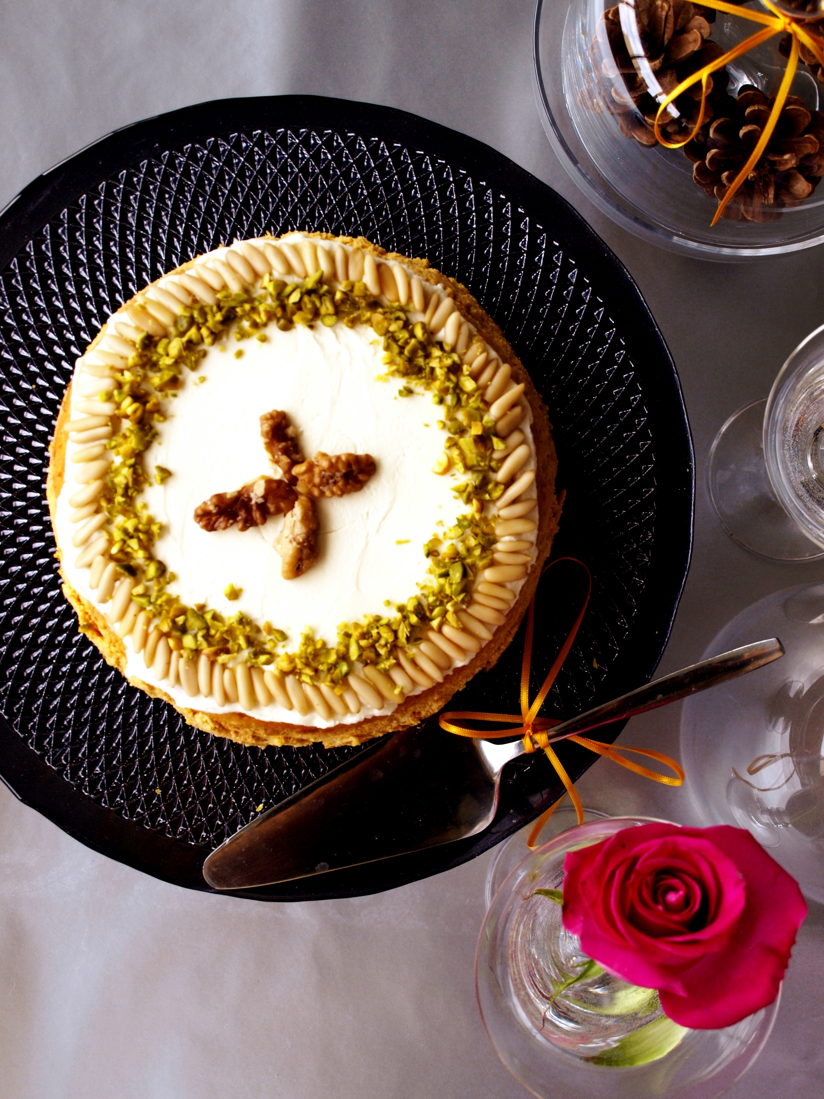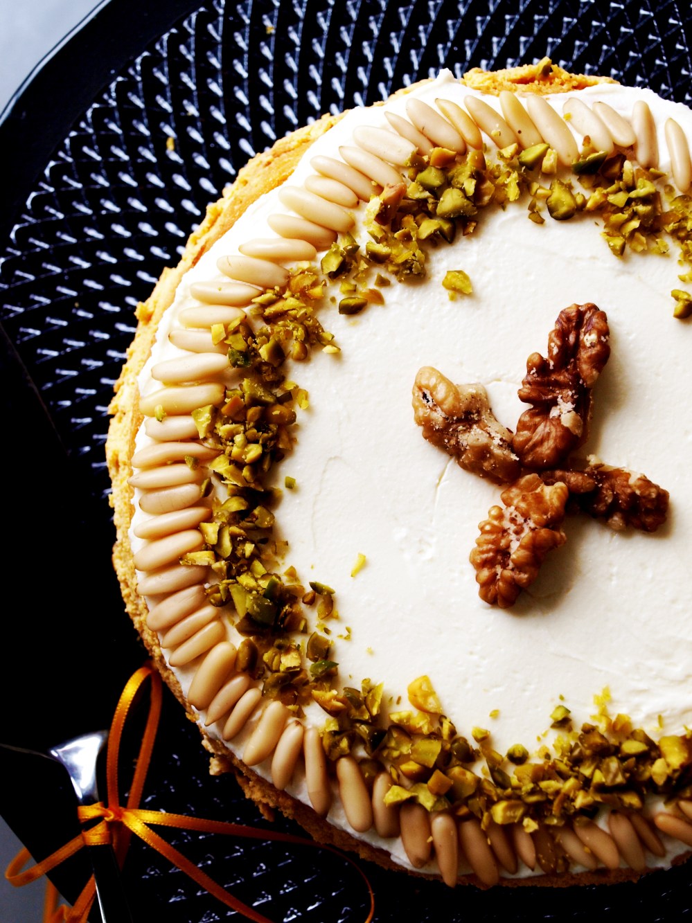 - Phết lên mặt bánh cheesecake đã nguội rồi trang trí thêm với các loại hạt khô.
