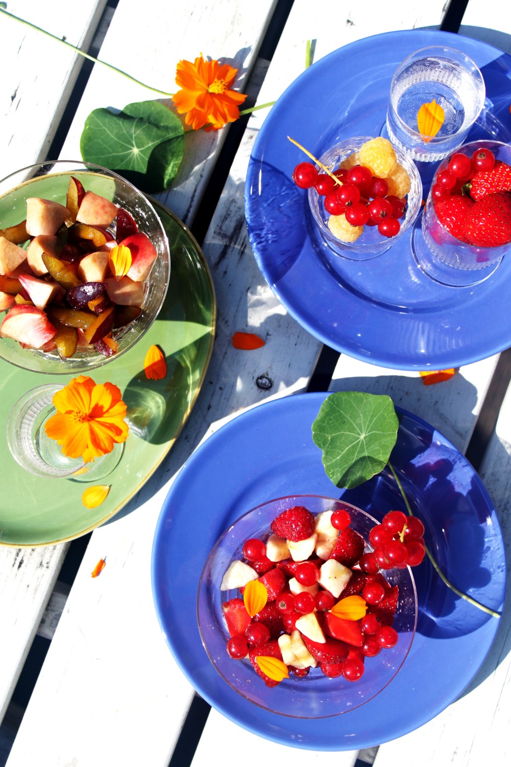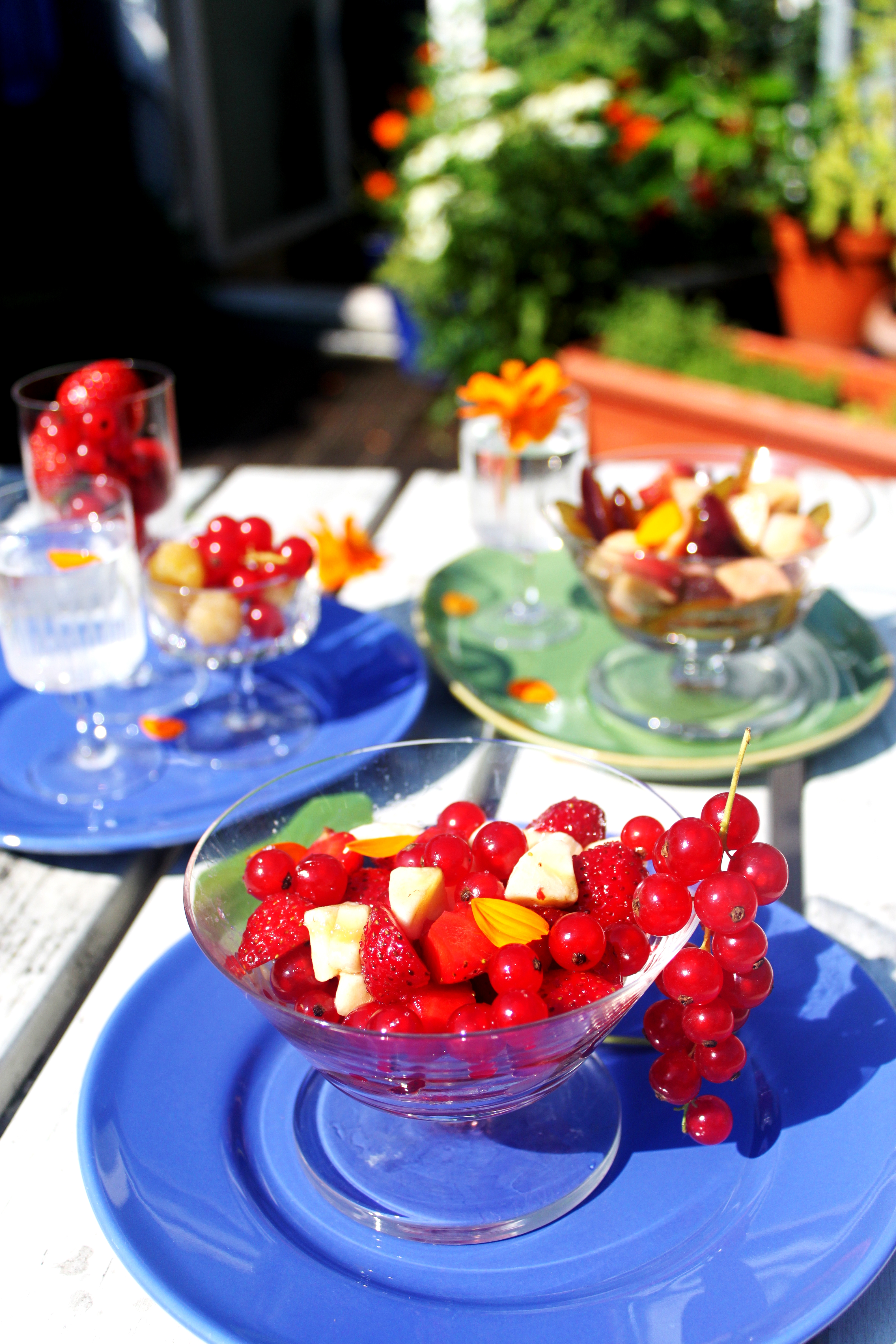 Một buổi chiều mùa hè, rủ thêm bạn bè đến ngồi quây quần dưới nắng, mỗi người một cốc salade hoa quả, có khi nhâm nhi thêm với chiếc bánh ngọt nếu bữa trưa không quá tham ăn no căng bụng, cùng trò chuyện cười đùa rôm rả sẽ rất rất vui đấy! 🙂