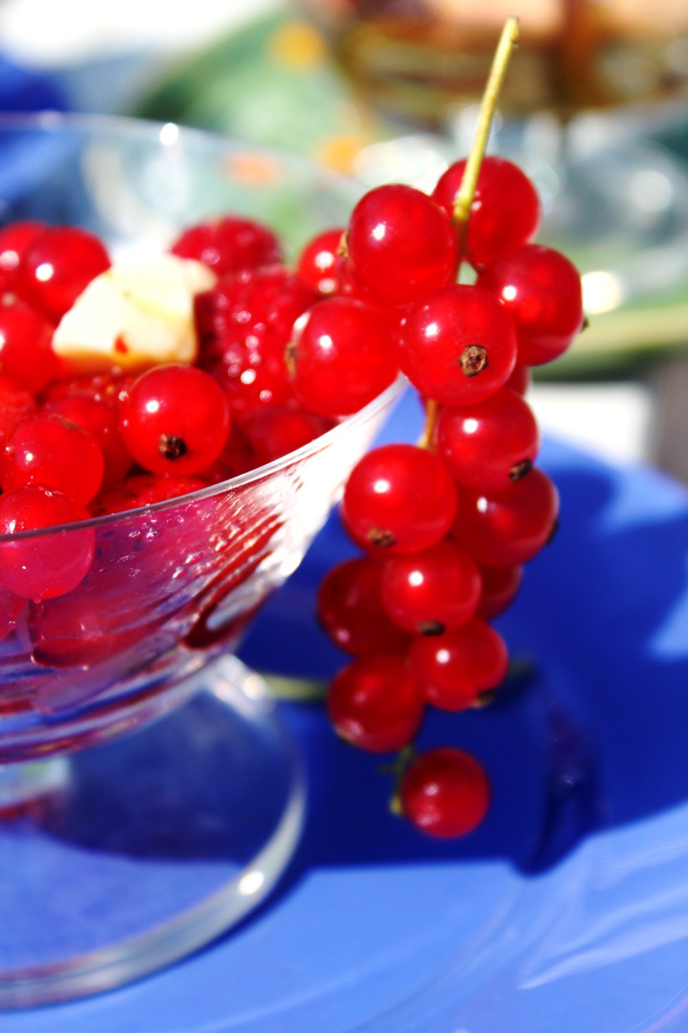 - Dâu tây bỏ cuống, cắt đôi. Chuối bỏ vỏ, cắt khoanh dày khoảng 1,5cm, quả lý chua bỏ cuống, trộn đều với đường, rượu rum và vani.