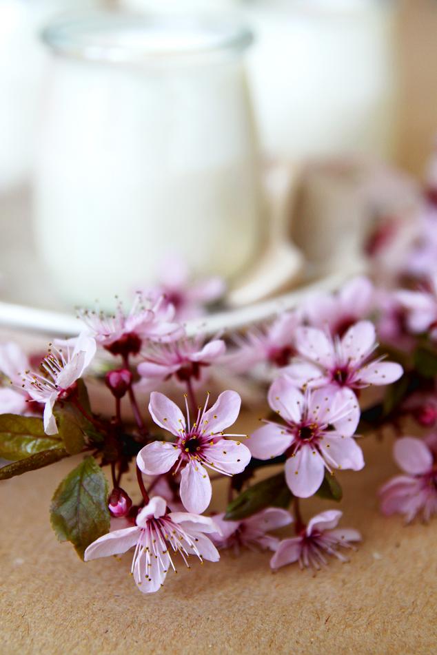 Kí ức tuổi thơ là thế, khi lớn lên quay lại Paris học mới biết đến vẻ đẹp của hoa mận, tính cách cũng bớt nổi loạn so với hồi thấy quả ngon trên cây là sẵn sàng trèo cây ngày ấy (bây giờ mà có trèo thì cũng chỉ là để … hái hoa về nhà cắm! Ôi thật là nữ tính hí hí!). Mùa xuân năm nay, khi có lọ hoa mận trên bàn, mình chợt nghĩ sữa chua đậu nành hẳn sẽ rất hợp với khung cảnh, vì sữa chua đậu nành cũng thơm dịu, nhẹ nhàng, ăn từng miếng có cảm giác rất trôi và rất êm, như những bông hoa mận cánh mỏng nương theo từng cơn gió nhẹ đầu xuân vậy.