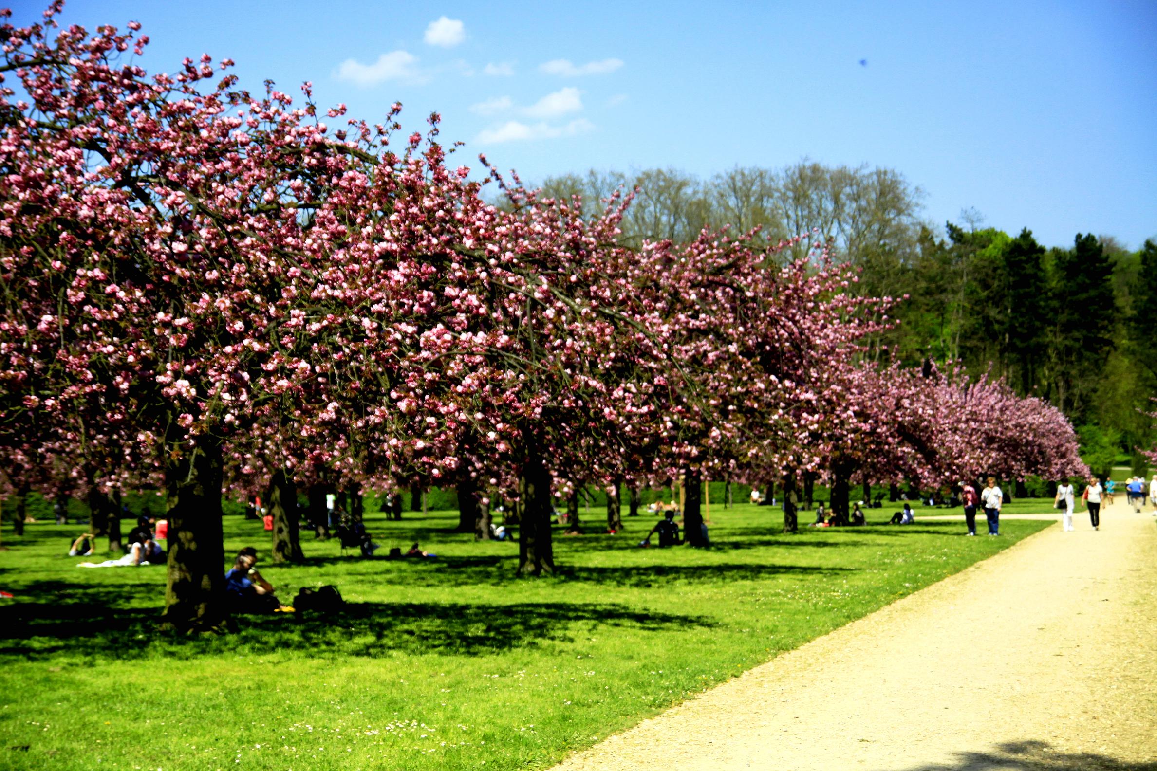 Đến khi sang Pháp mới biết là ở đây có rất nhiều cây hoa anh đào, cứ đến mùa xuân, sau khi hoa mận rụng là hoa anh đào bắt đầu nở rộ. Hầu như mỗi góc phố, mỗi công viên đều có 1 gốc anh đào, nhưng nhiều nhất có lẽ phải đến parc de Sceaux. Parc de Sceaux (công viên của vùng Sceaux) là một công viên rất rộng (1,81 km2) nằm ở ngoại ô phía Nam Paris, chỉ cách Paris khoảng 20km. Công viên này trải dài qua 2 vùng Sceaux và Antony. Trong công viên có 2 vườn anh đào, 1 vườn hồng và 1 vườn trắng, đến khoảng giữa tháng 4 hoa cũng nở rộ, mình và vài người bạn hàng xóm chọn 1 ngày rực nắng đi chơi ngắm hoa, 1 ngày thư thả chỉ hít hà không khí trong lành và tận hưởng niềm vui ở trạng thái tinh khiết nhất của nó. 🙂