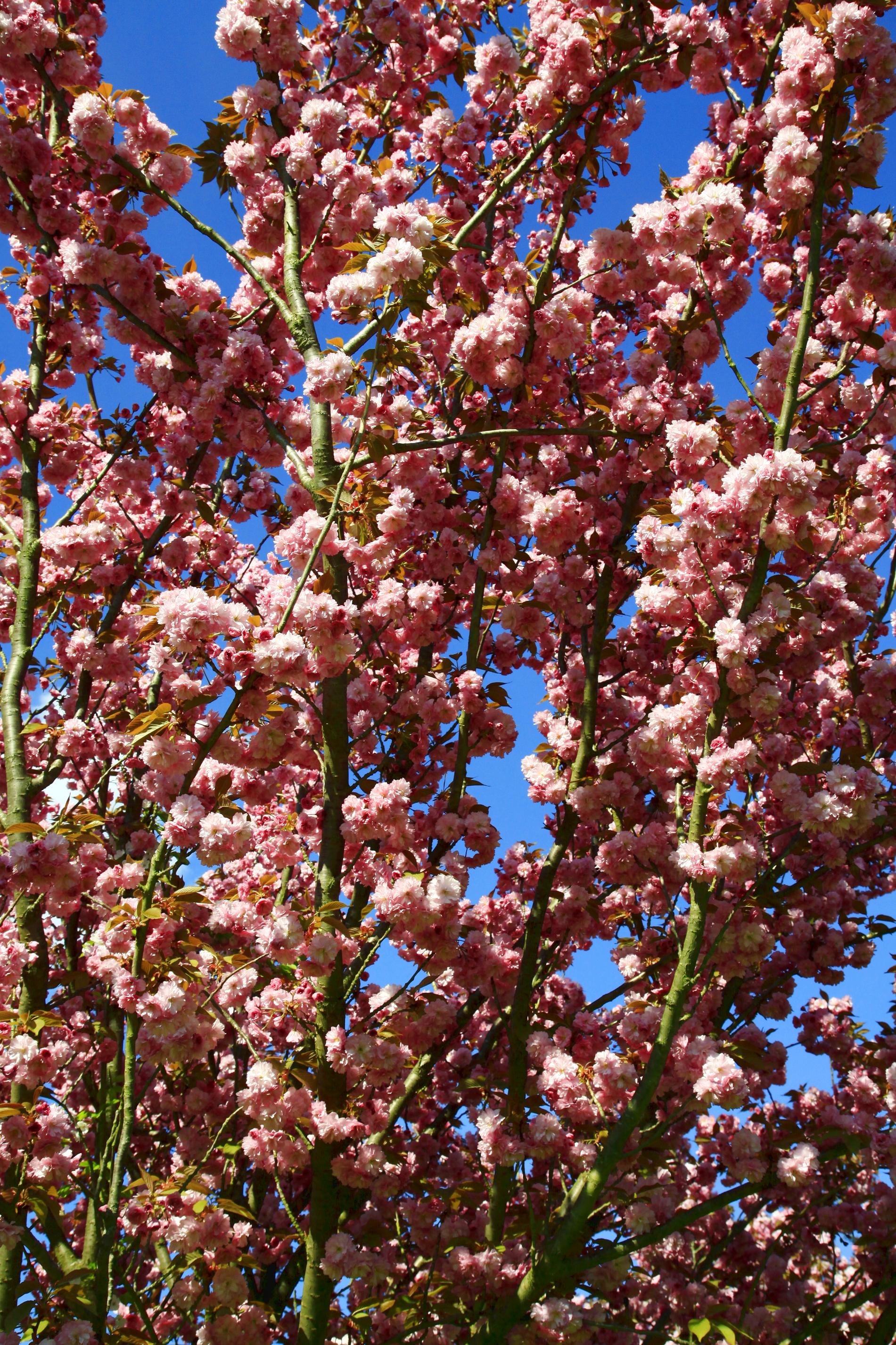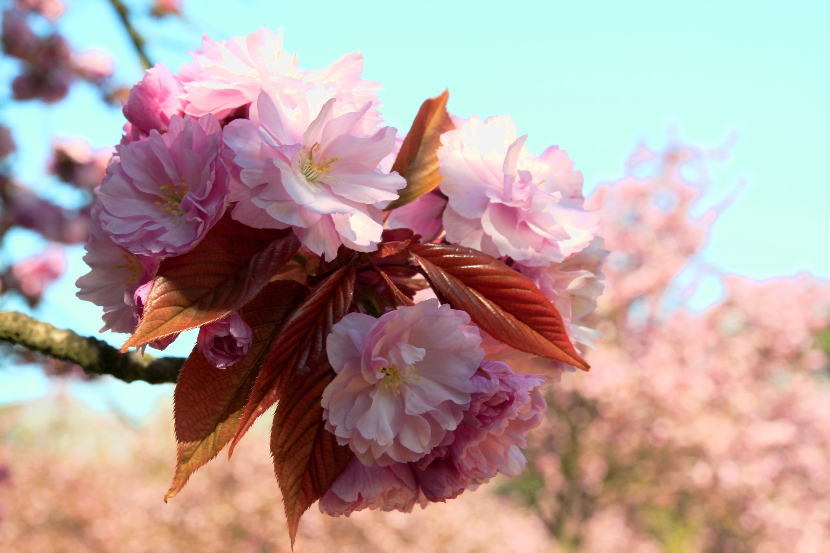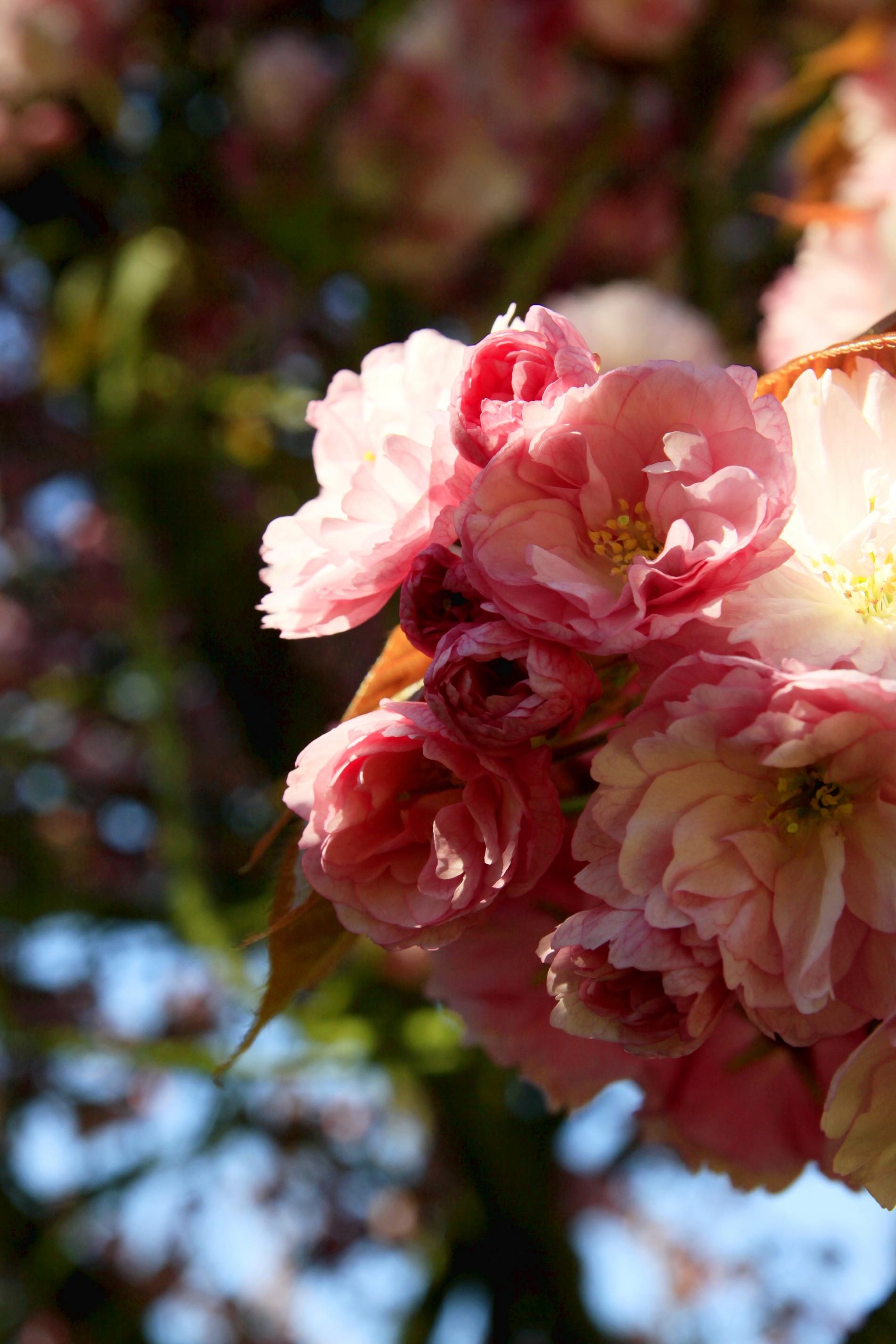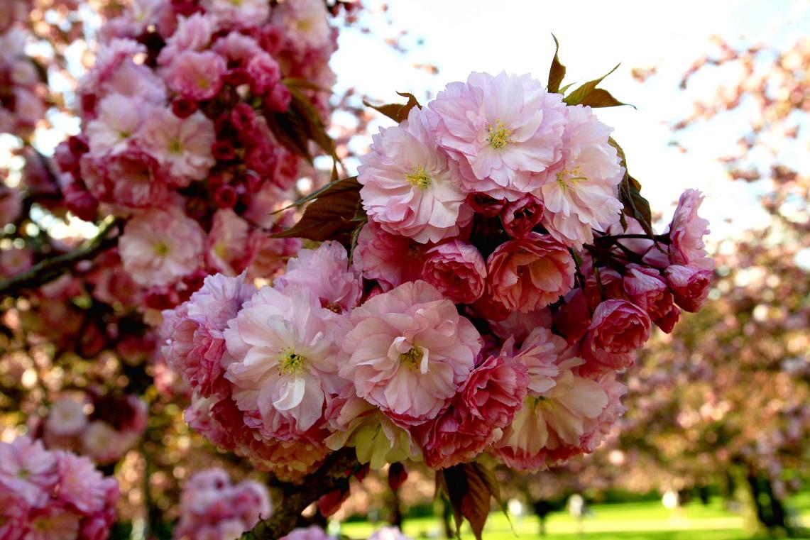 Anh đào thường mọc thành từng chùm hoa như 1 quả cầu hoa nhiều sắc độ của màu hồng nhìn thật mê mẩn!