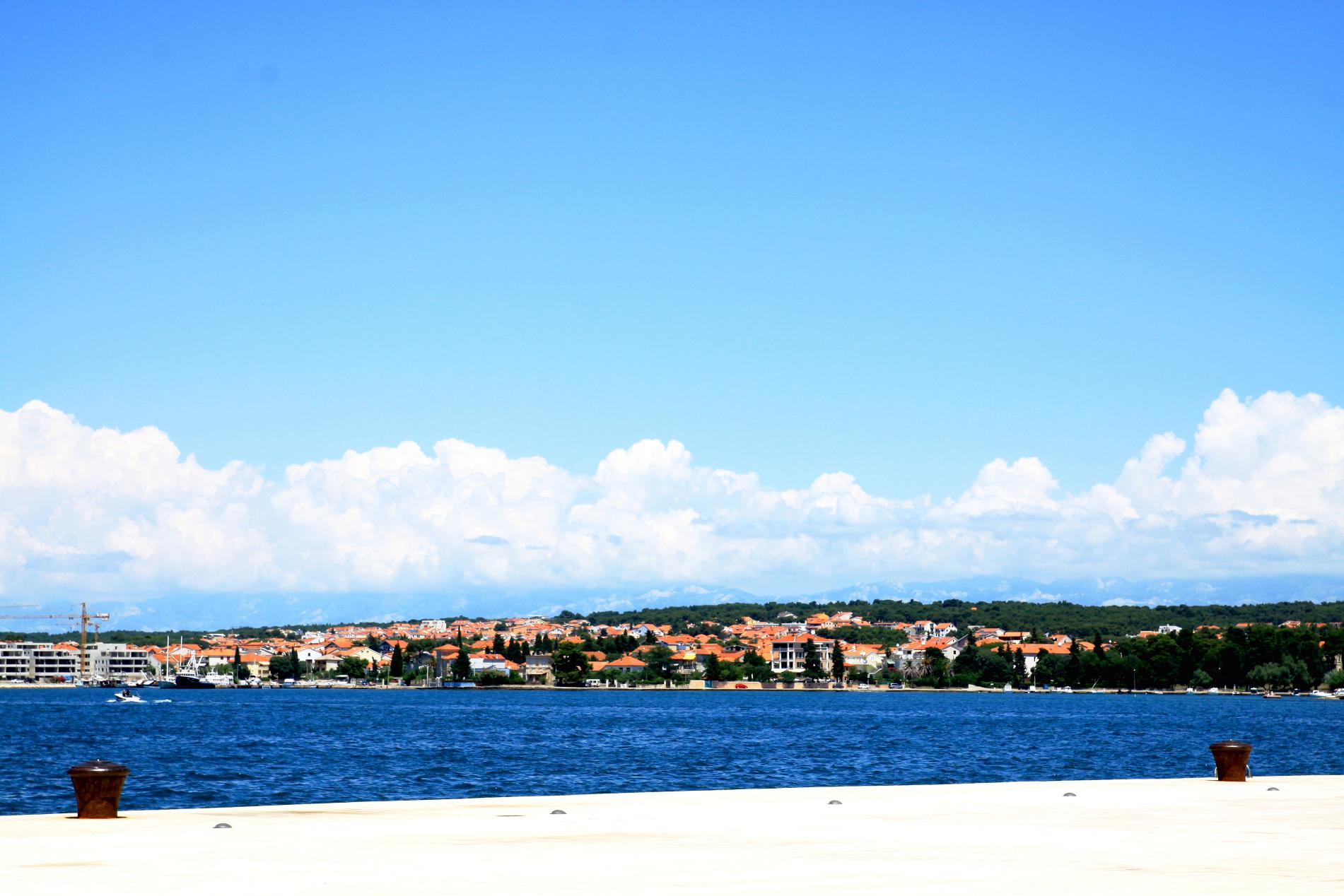Sáng hôm sau ngủ dây, 2 bạn đi siêu thị mua kem chống nắng và đồ ăn sáng, ăn uống và bôi kem xong xuôi đâu đó rồi mới bắt đầu tung tăng đi dạo trong thành phố. Zadar chỉ là 1 thành phố biển nhỏ của Croatia, có thể không nổi tiếng như thủ đô Zagreb hay các thành phố biển khác như Dubrovnik, Split… nhưng cái hay của Zadar là vừa có biển trước mặt vừa có núi giáp lưng.