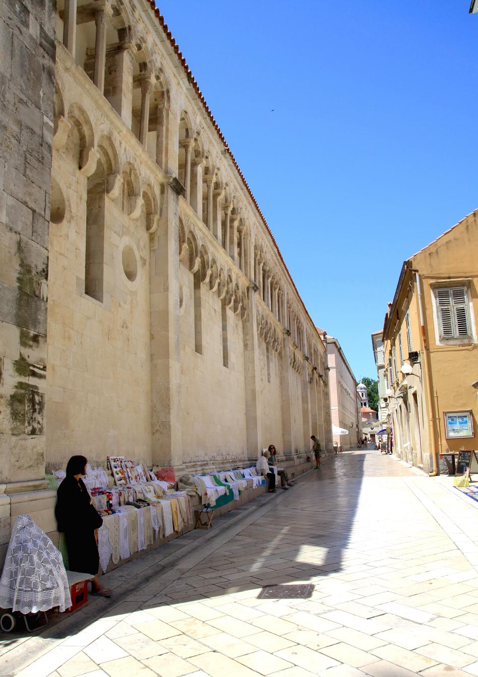 Đường trong phố cổ ở Zadar cũng giống như ở Dubrovnik, đều cấm tất cả mọi phương tiện khác mà chỉ dành cho người đi bộ, đường lát đá sau nhiều năm đi lại trở nên trơn nhẵn bóng loáng, 2 bên đường có những hàng bán đồ đăng ten và đồ khắc gỗ, những mặt hàng thủ công khá là nổi tiếng của Croatia.