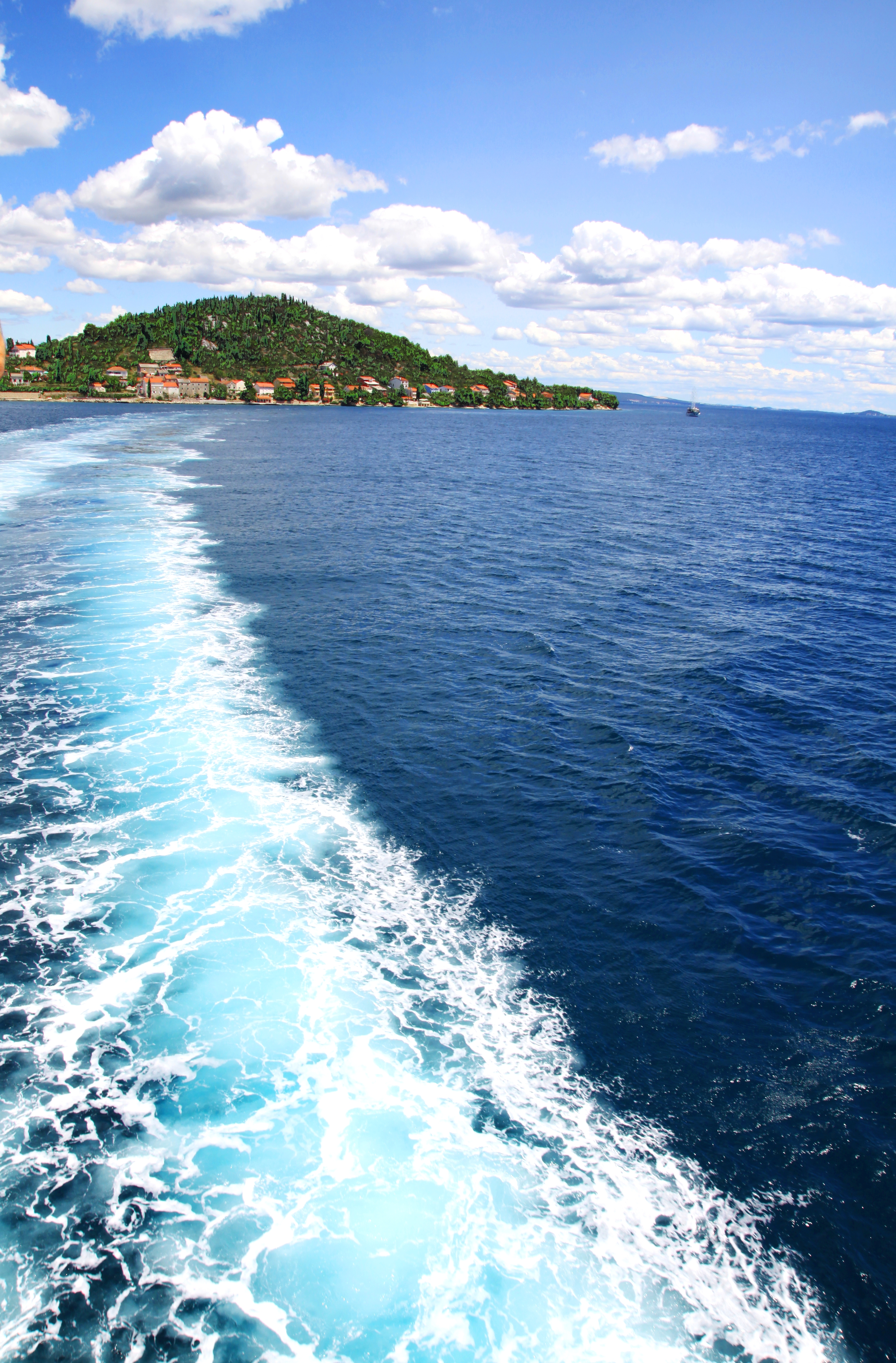 Con phà to nên vệt sóng để lại trên mặt biển cũng to đùng, trắng xóa hì hì… ^^