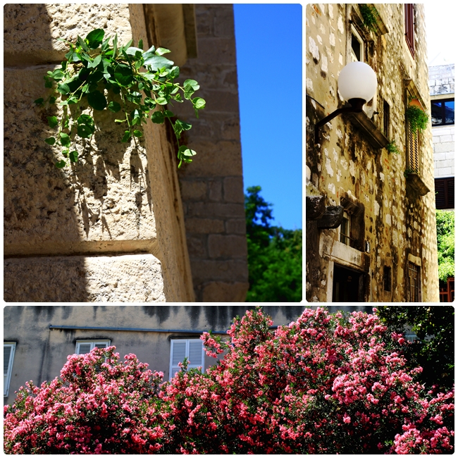 Đầu tiên bọn mình đi từ bến xe bus vào bên trong phố cổ, đi qua những cái ngách rất nhỏ với nhà cửa san sát cao cao 2 bên với những bức tường đá và những cây hoa.
