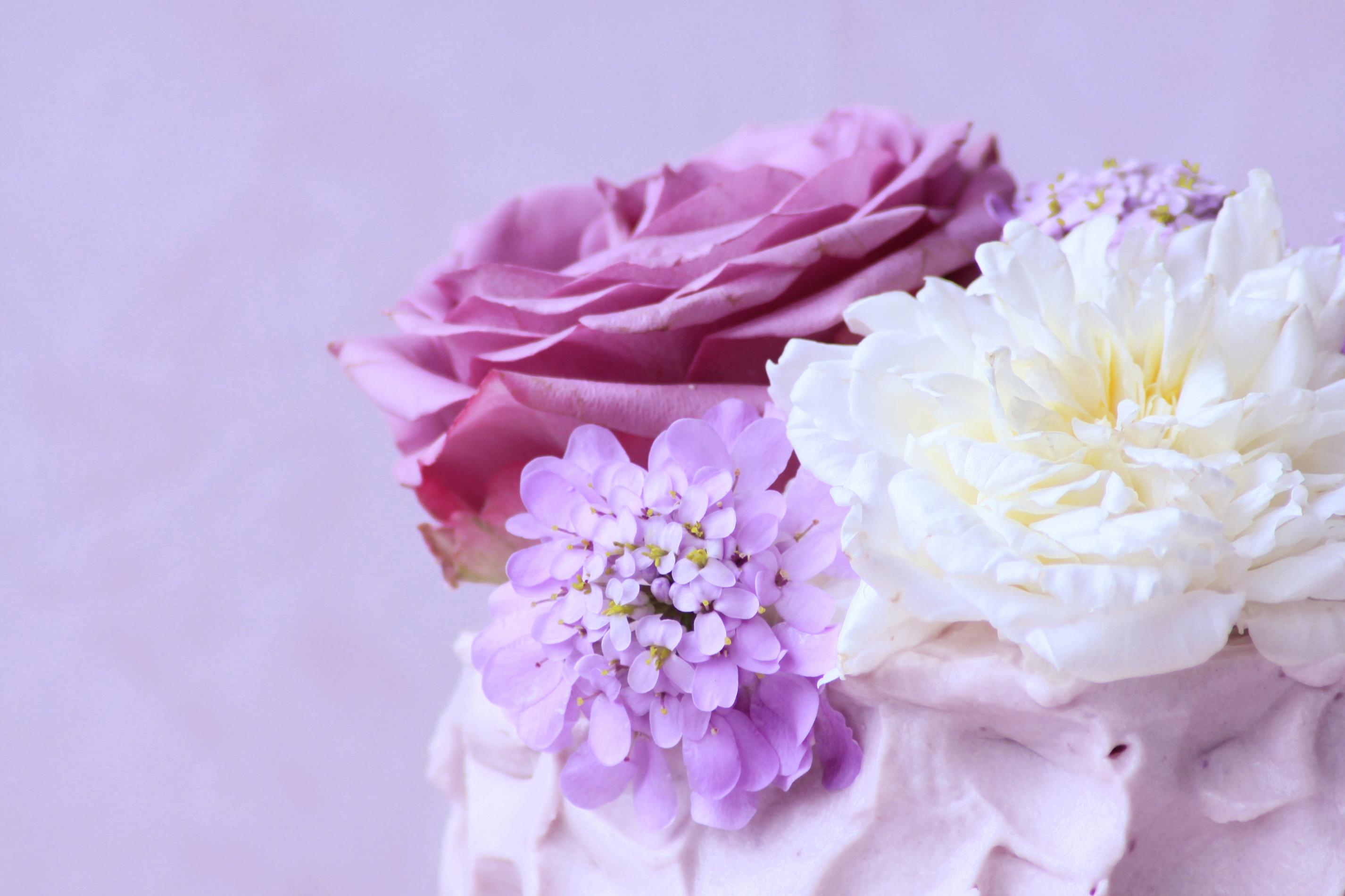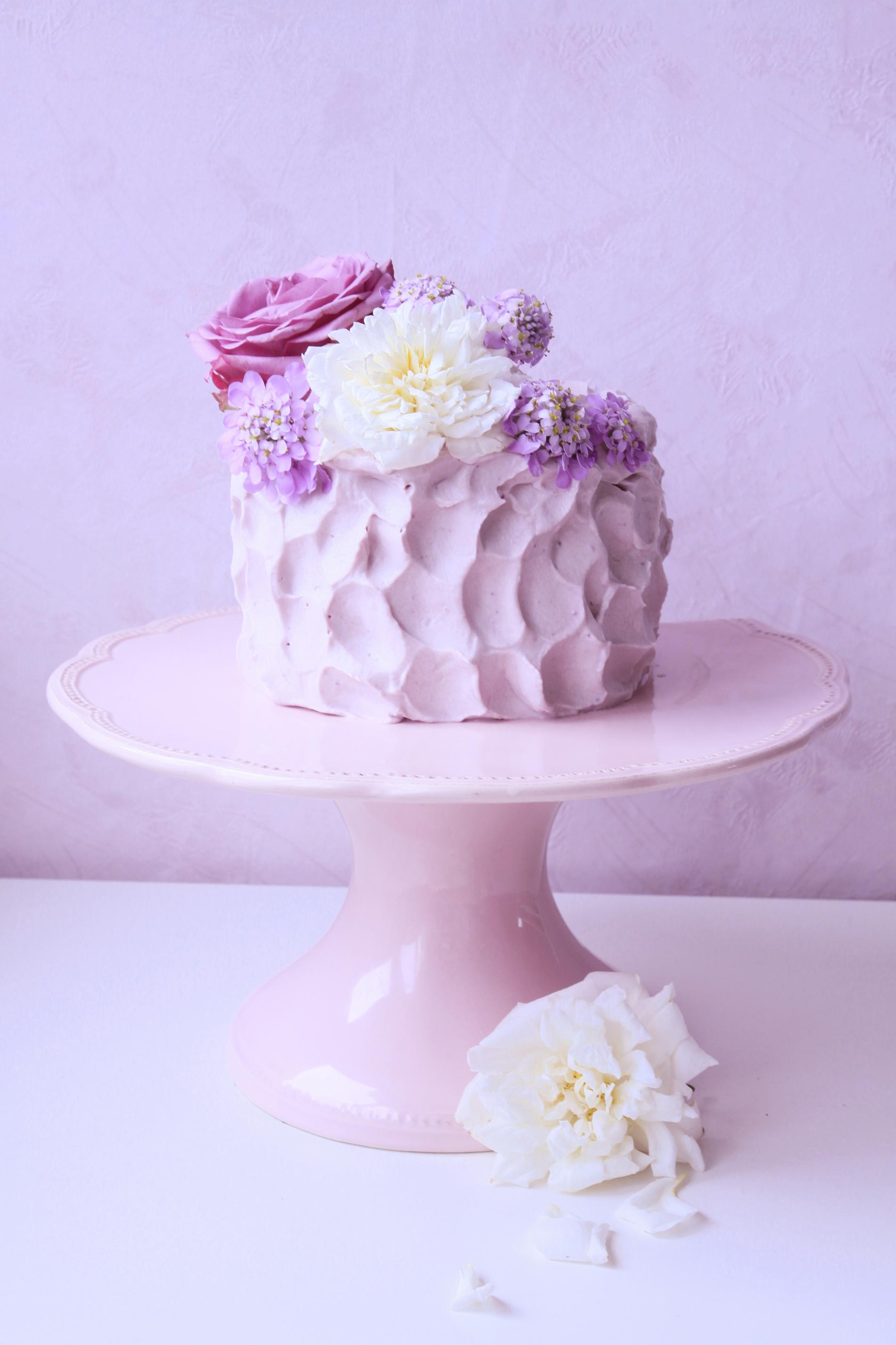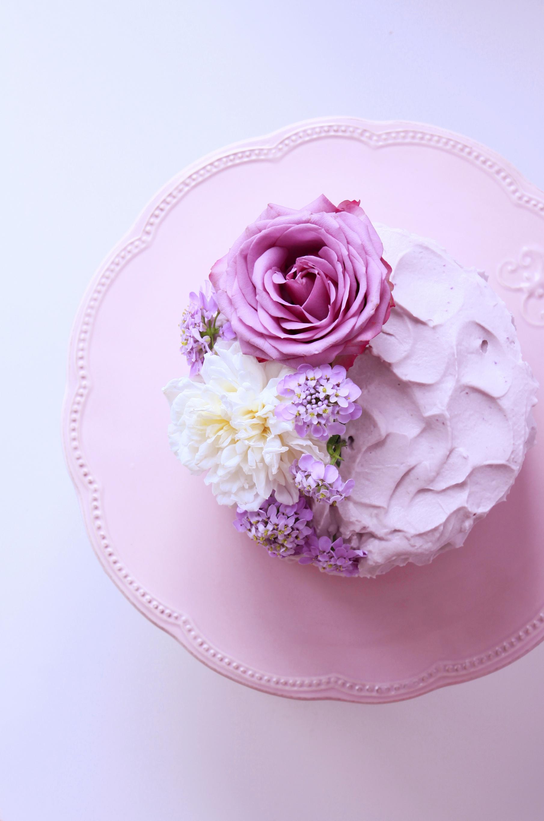 • Bánh đã đông lấy ra gỡ khuôn. Phết kem frosting bên ngoài, dùng lưng thìa tạo thành vân sóng rồi trang trí với hoa tươi.