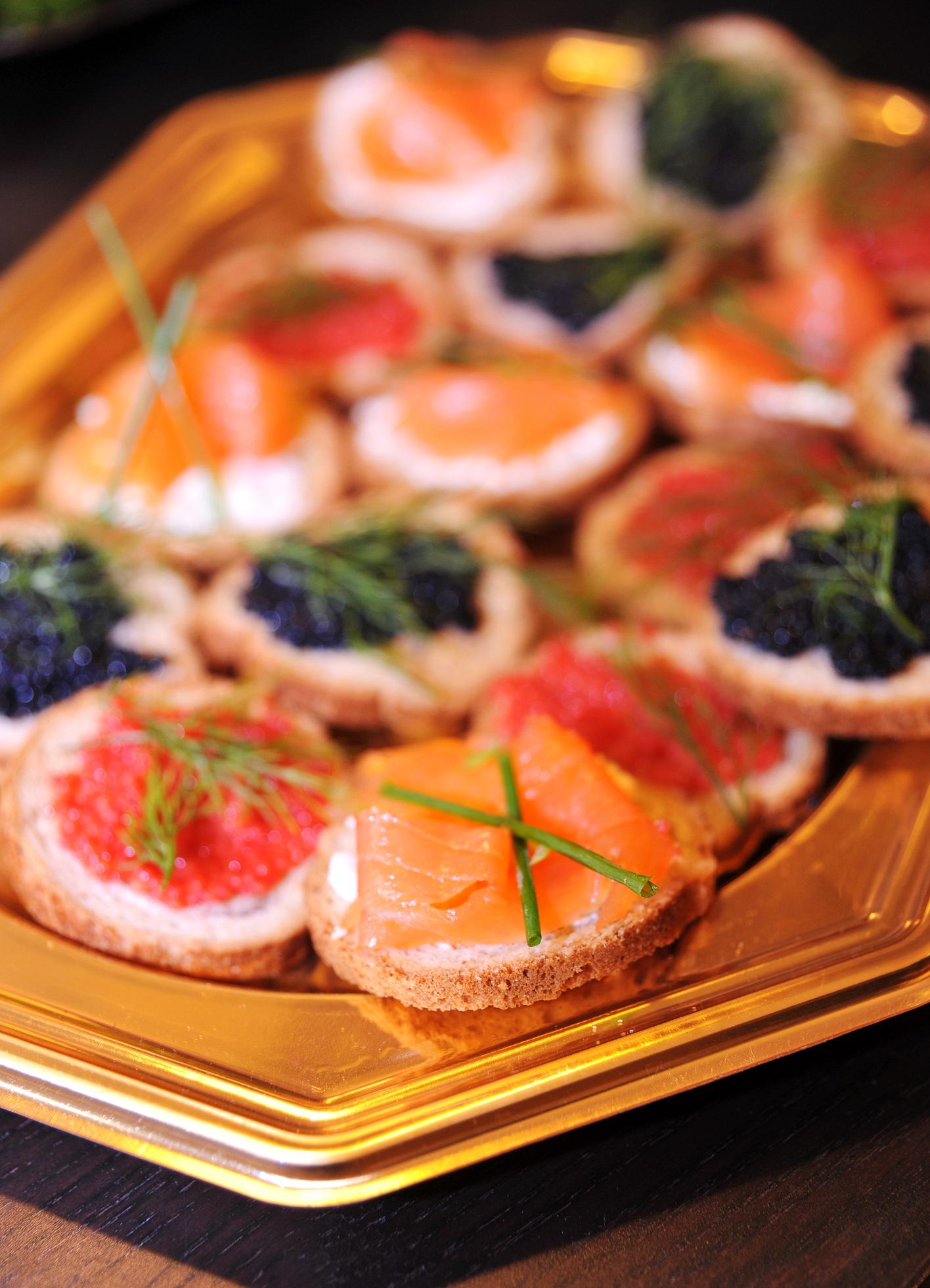 Bữa tối có các món đơn giản thôi, mình phụ trách món khai vị là bánh toast nướng với trứng cá muôi/thì là, và creamcheese cá hồi hun khói với hành.
