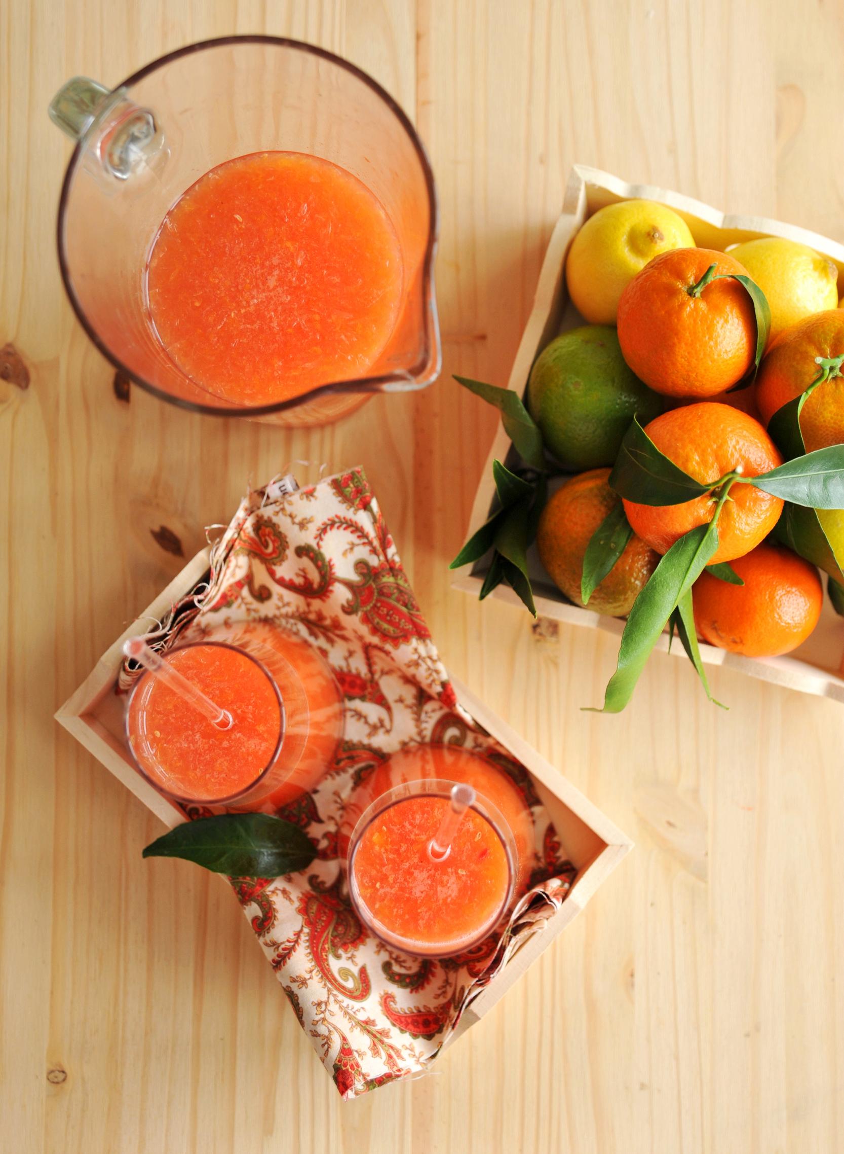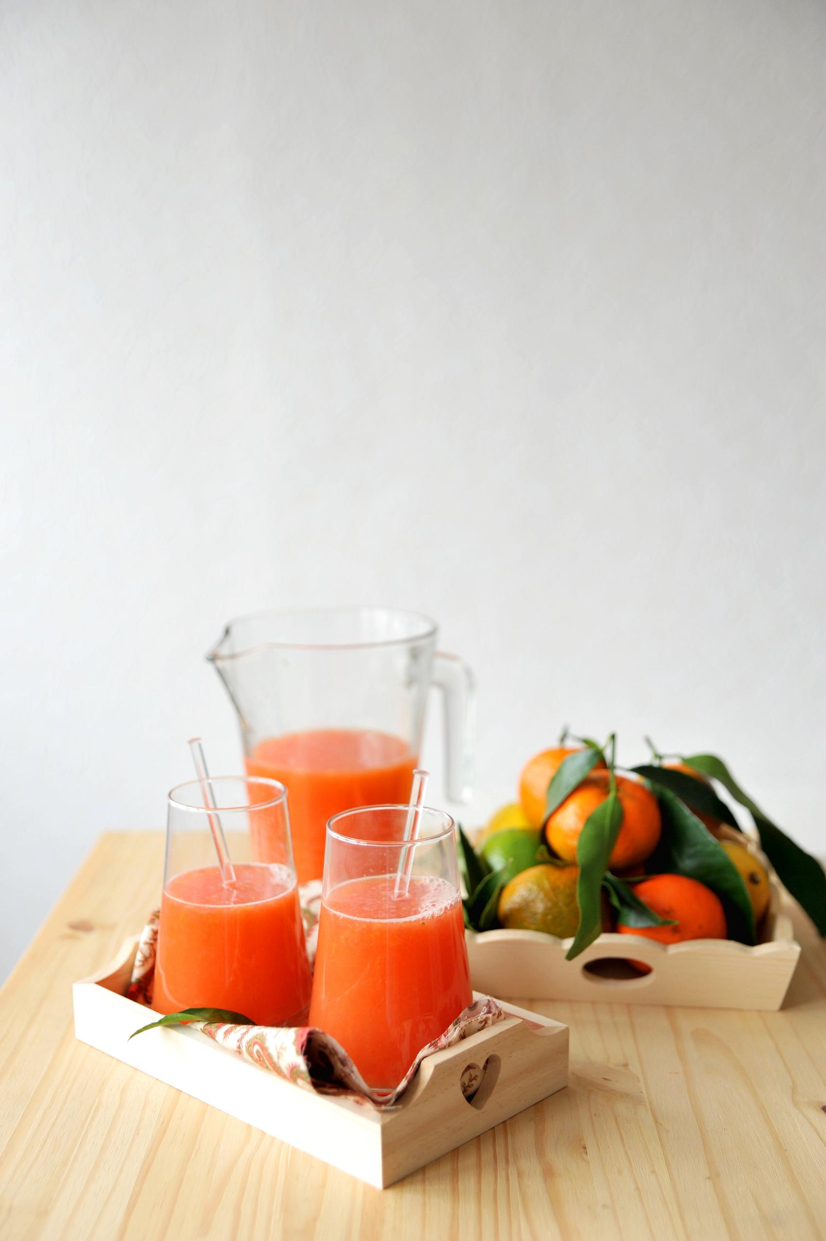 Món này chắc không cần công thức, bạn có thể vắt tất cả các loại quả citrus mà bạn có với nhau :), nhà mình có bưởi nhăng nhẳng đắng nhưng rất thơm, có quýt chua ngọt dịu, có chanh vàng và chanh xanh đậm đặc vitamin C. Hôm nào nhiều bưởi thì nước sẽ có 1 màu hồng cam rất mê ly, nếu không mình vẫn hay có 1 mẹo nhỏ là cho thêm 1 ít mâm xôi (raspberries) nghiền và lọc bỏ hạt vào, chút màu hồng đỏ của mâm xôi sẽ làm cho bình nước có màu rất hấp dẫn.
