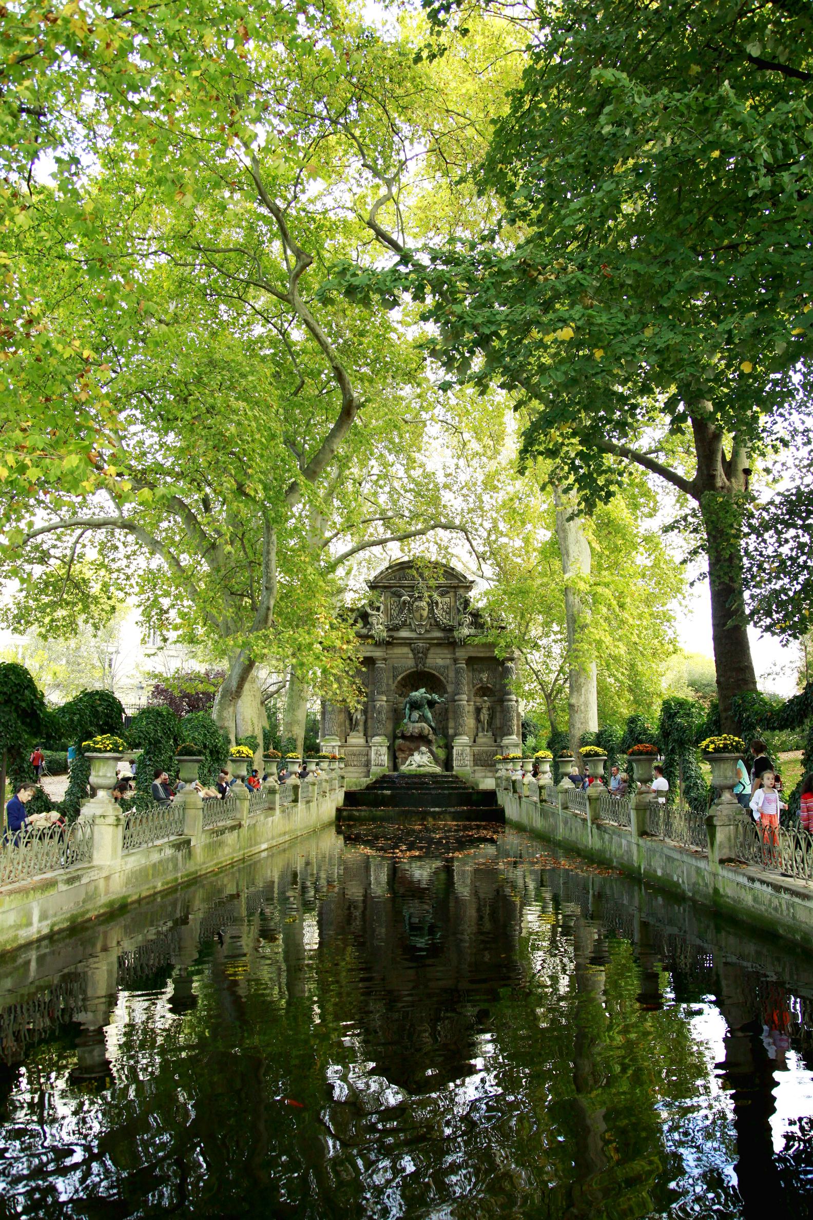 Đài phun nước này được xây dựng bởi hoàng hậu goá của vua Henri IV, Marie de Medicis. Chẳng nhớ mình đọc ở đâu hay nghe đồn là ở đây có … ma. Nếu bạn đi dạo vào 1 ngày trời mùa đông âm u, vắng vẻ, biết đâu sẽ được gặp đấy :)), còn mình nhát nên chỉ dám đi vào lúc nắng đẹp tưng bừng, người thì nô nức đông như trảy hội, nên cũng dám to còi thắc mắc với bạn đi cùng “này em chẳng thấy con ma nào cả ý!!” 🙂