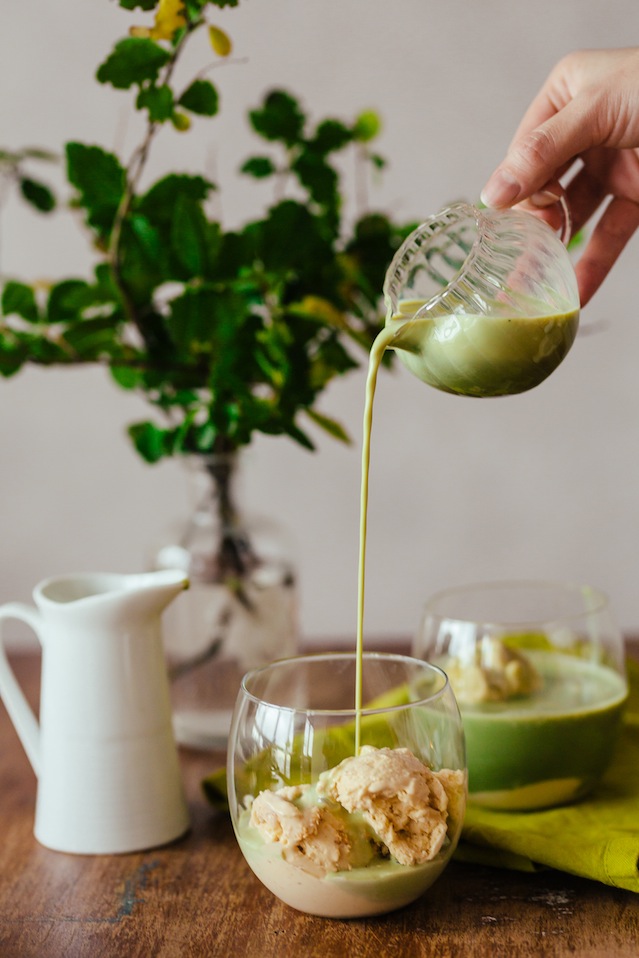 Affogato sữa đậu nành trà xanh dừa (Matcha coconut soy milk affogato)