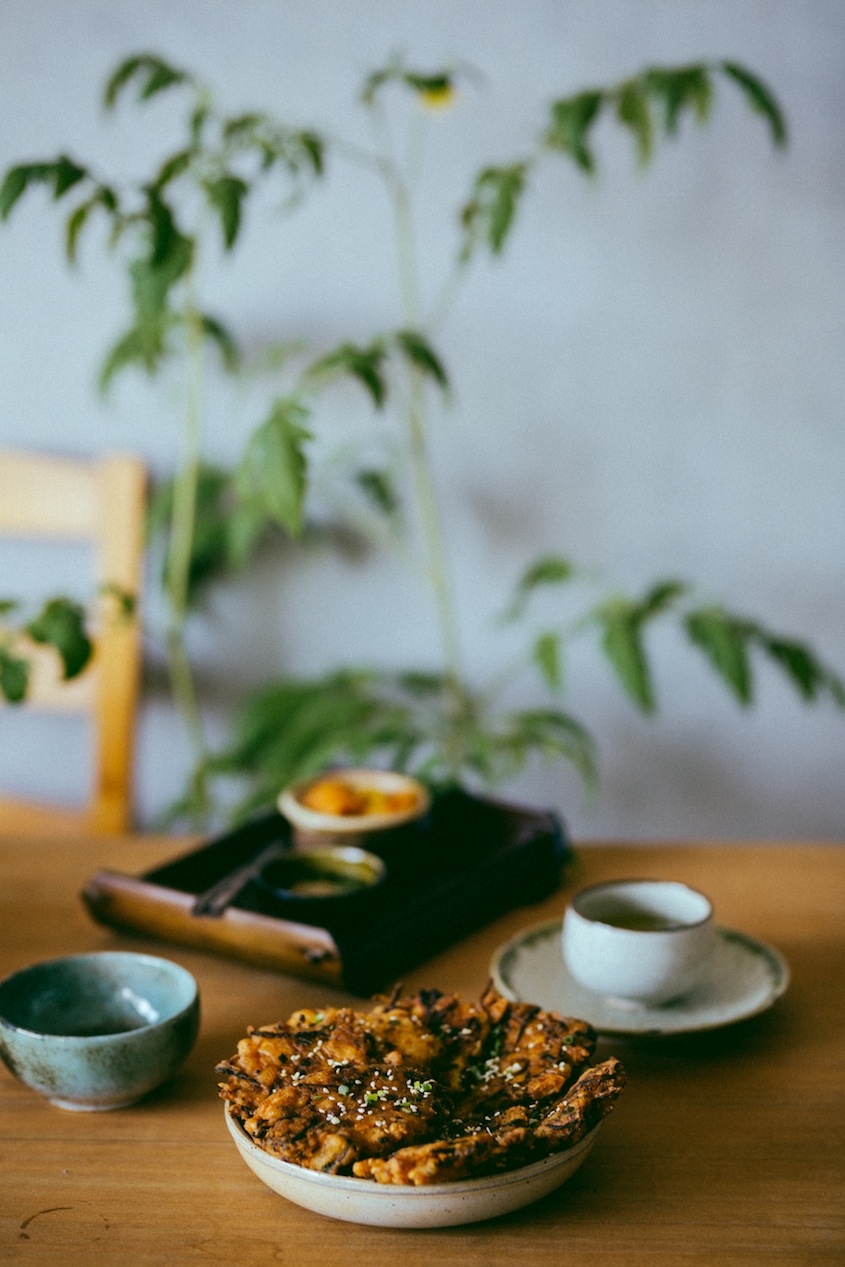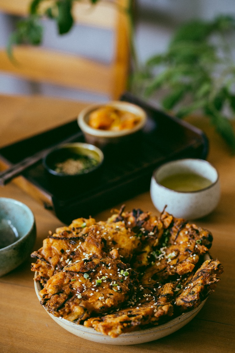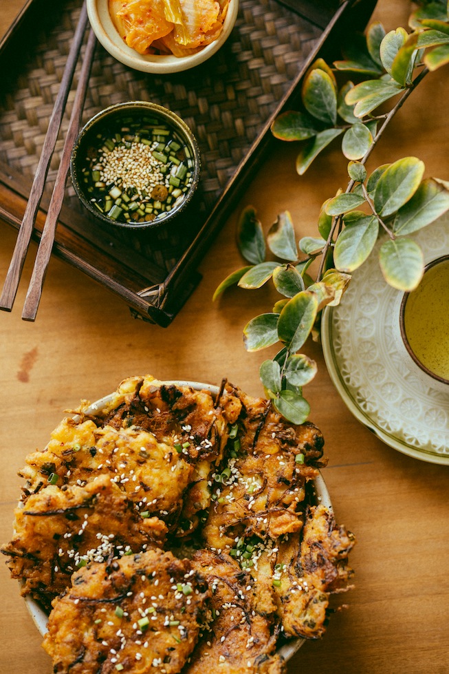 Bánh pancake đậu xanh kimchi kiểu Hàn (Mung bean pancake or Bindaetteok)