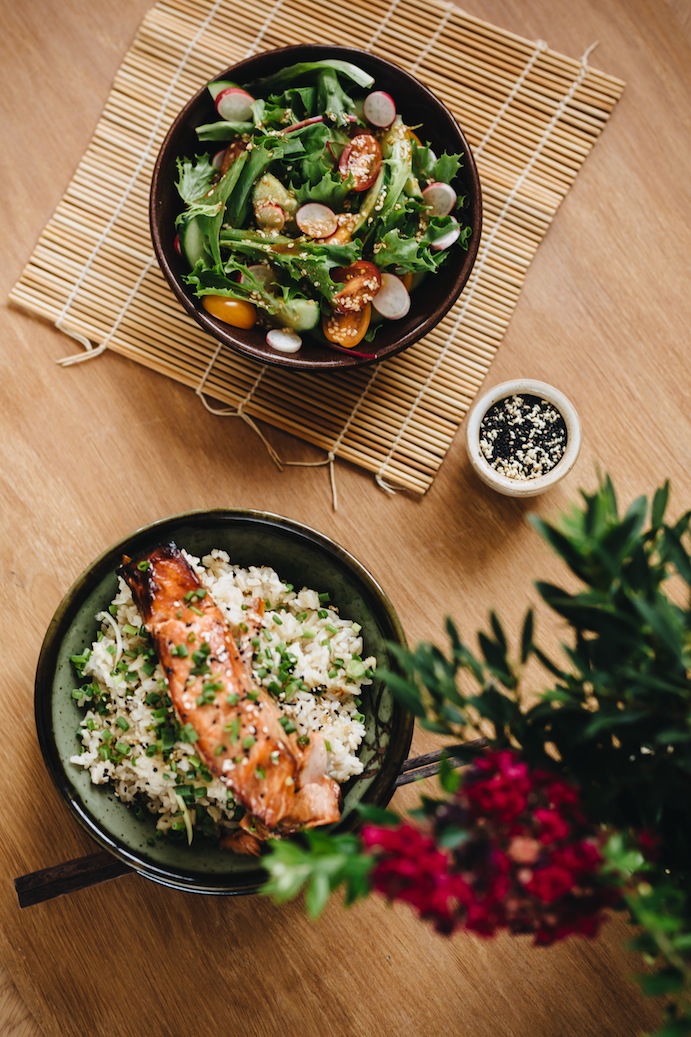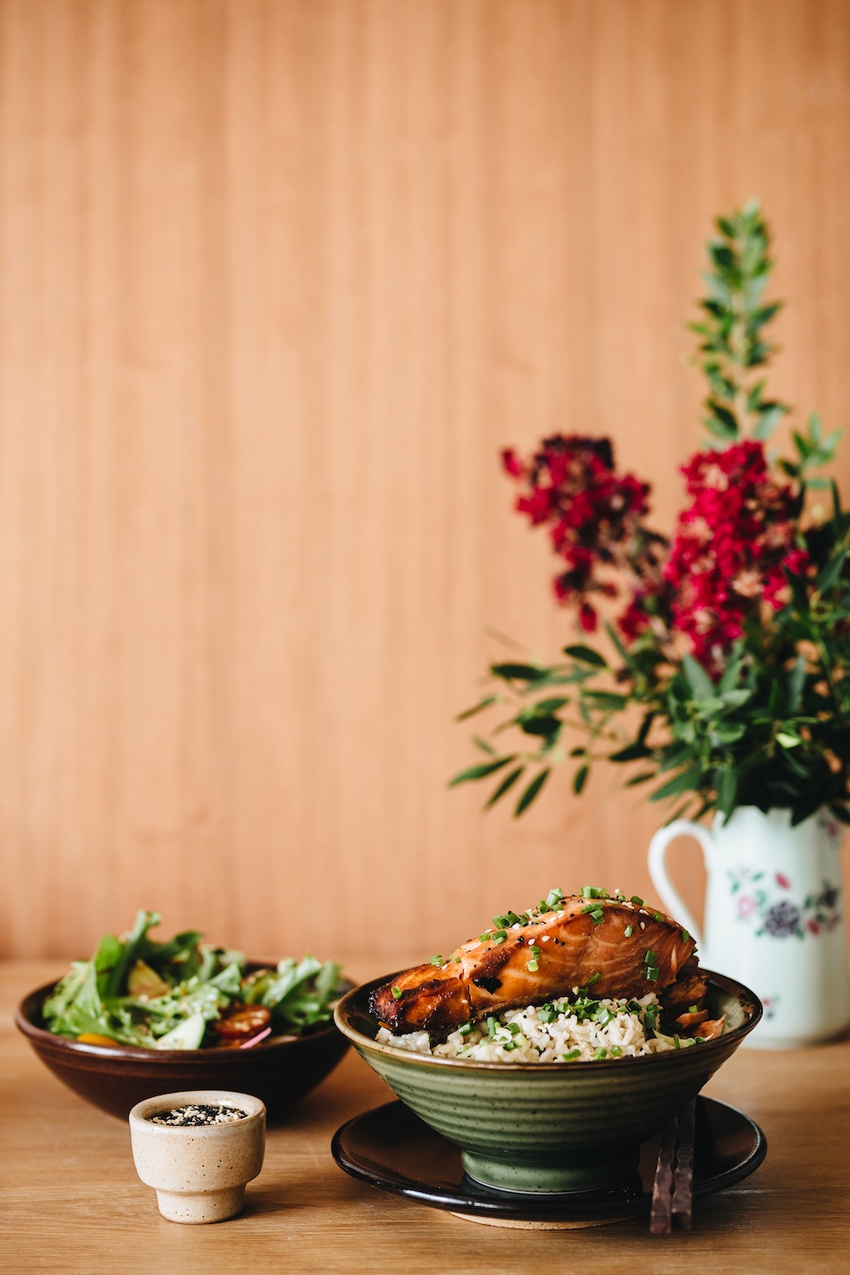 Post mới hôm nay mình lại xin quay lại với món cơm kiểu Nhật bày trong tô gốm xinh xinh ^^. Nhanh quá là nhanh đã sắp đến Halloween và ù 1 cái là đến dịp lễ Tết cuối năm rồi!! Thời gian này trong năm là thời gian mình luôn siêu bận, vắt chân lên cổ làm mãi ngẩng lên vẫn thấy 1 núi việc T__T, như bài post này cũng là viết từ lâu lâu và đặt trước đến ngày là lên sóng. Bận thế nên đương nhiên nếu vẫn muốn ăn uống ngon lành đủ chất thì phải tìm món gì đơn giản nhanh gọn nhẹ thôi chứ không miên man trong bếp như mọi khi được. Bữa ăn với cá hồi nướng miso và salad rau mầm sốt miso này là câu trả lời hoàn hảo cho những ngày bận rộn như thế!