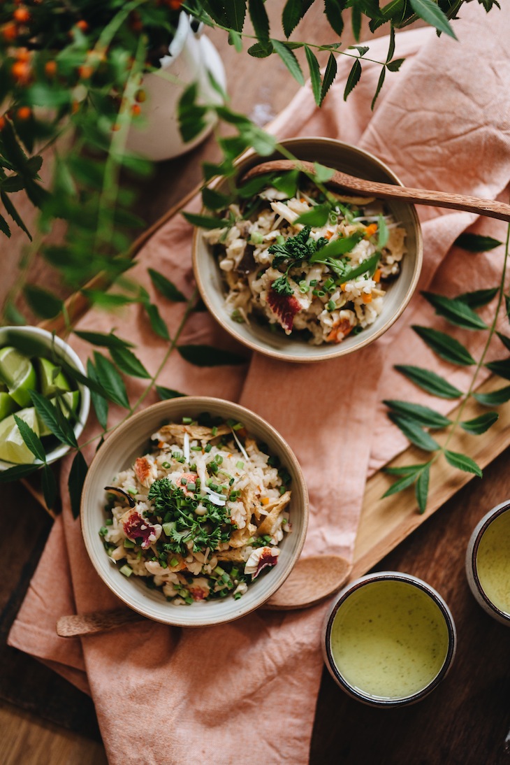 Về phần rau củ cũng vậy, mình hay dùng nấm, cà rốt và đậu Hà Lan vì dễ kiếm, nhưng đến mùa bạn có thể thêm măng, hạt dẻ, rau cải hay khoai lang thái hạt lựu nhỏ…. Nói chung đây là 1 món ăn bạn có thể tuỳ hứng mà biến tấu, sáng tạo ra món cơm với khẩu vị của riêng mình.