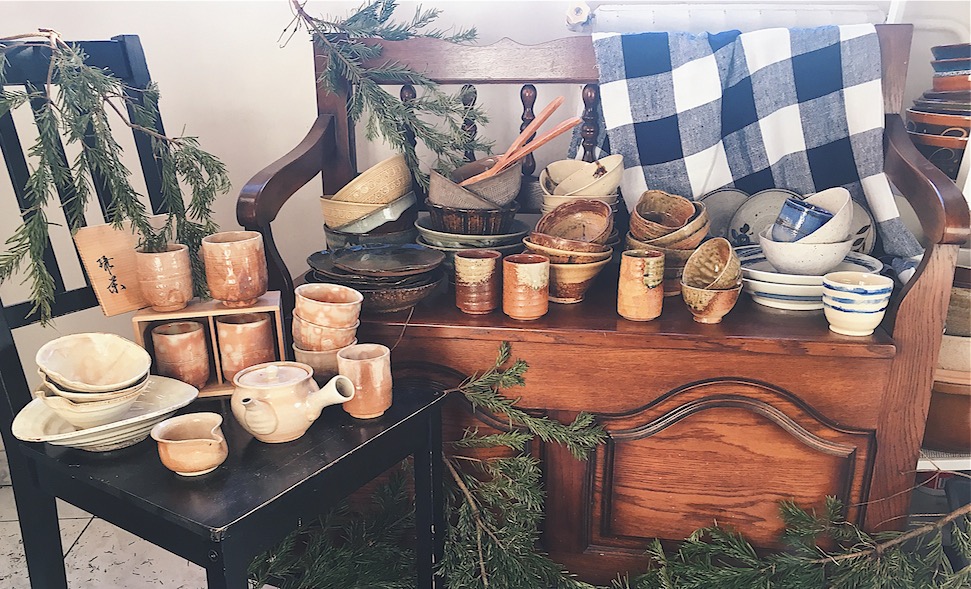 Tranh thủ khoe luôn với mọi người đam mê mới của mình là đồ gốm mộc hihi ^.^!!! Dạo này vì mê nên đọc nhiều về gốm, thực sự mới đọc về gốm Nhật đă hoa hết cả mắt, và cũng mê tít luôn, từ những dòng Bizen mộc mạc không tráng men lúc cầm vào còn nguyên cảm giác của đất, đến dòng Shino men đỏ cam pha những hạt trắng hay dòng Hagi hồng (đồ trên ghế trong hình dưới) là dòng mình mê nhất với loại men với những đốm hồng đặc trưng trên nền trắng ánh lên như ngọc trai…. Lại còn gặp được 1 em chủ hàng gốm đáng yêu dễ sợ, chụp hình từng chiếc bát, cốc, ấm trà, giới thiệu, kể chuyện về gốm cho mình nghe, thêm anh bạn cùng nhà cũng mê đồ thủ công nữa nên mình mới sa đà, chọn đi chọn lại mà vẫn mua đến nhiêu đây. Mà cũng không hiểu có khi kiếp trước mình làm trâu ngựa cho thằng bạn thân hay sao =)), mà kiếp này nó sang làm việc cũng thồ cho mình đến hơn 20kg gốm như này đây, chưa kể thêm cả 15kg đồ ăn nữa!!!! Thật là xúc động hết sức luôn ý!
