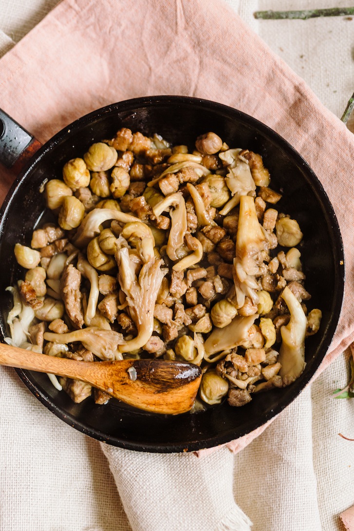 Món xôi nấm hạt dẻ này là một món ăn vô cùng thích hợp cho những buổi tối như thế! Hạt dẻ mình cùng hội bạn đi nhặt trong rừng từ mùa thu, mọi người thì ngại nên chẳng ai đem về, thé là mình thầu hết, mang túi to túi nhỏ về, hì hụi khứa vỏ, nướng 1 mẻ, luộc 1 mẻ, bóc vỏ sưng cả tay xong rồi chia nhỏ để trử trong ngăn đá. Trung thu có thể làm nhân bánh trung thu vị hạt dẻ, có thể nghiền 1 chút vào phần bột các món bánh, hay nấu món xôi nấm hạt dẻ non tuyệt cú mèo này.