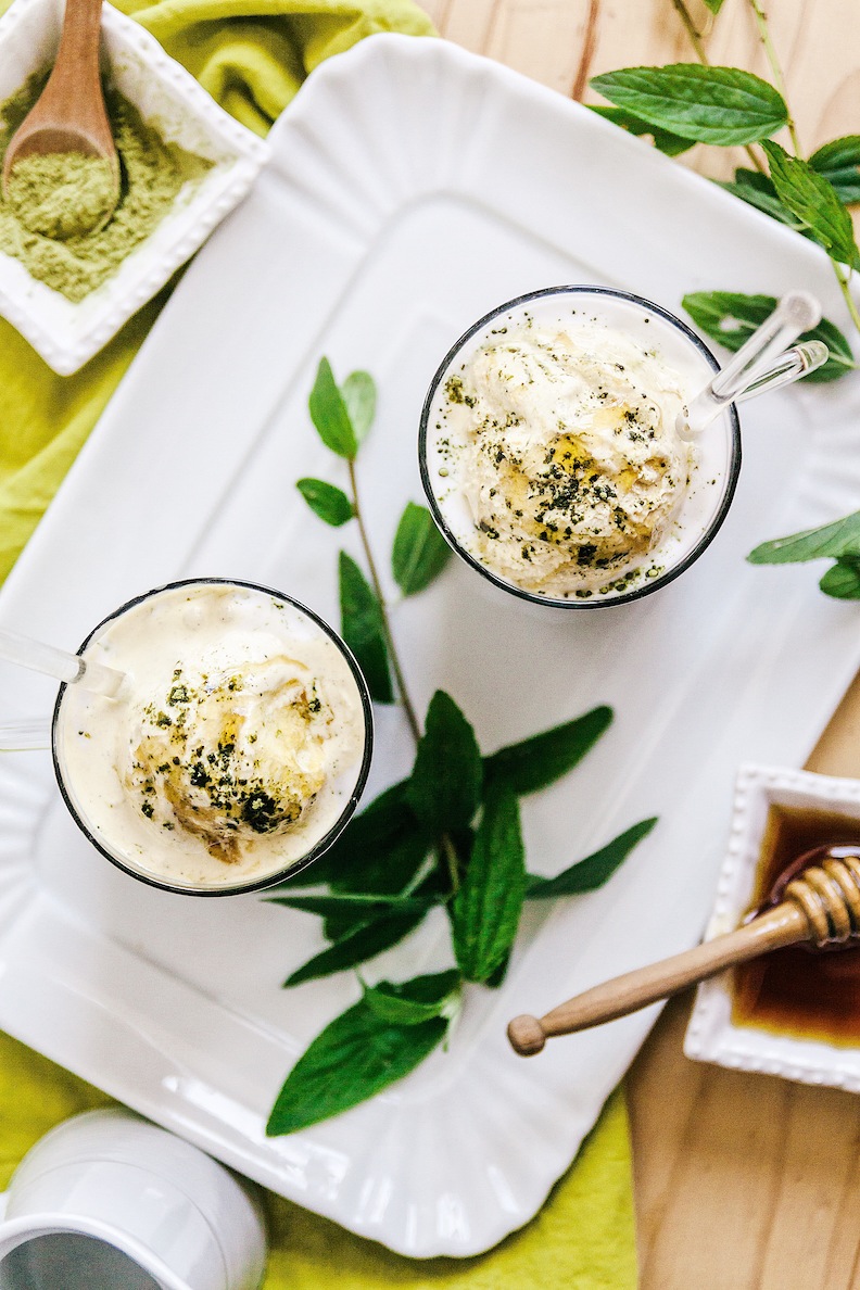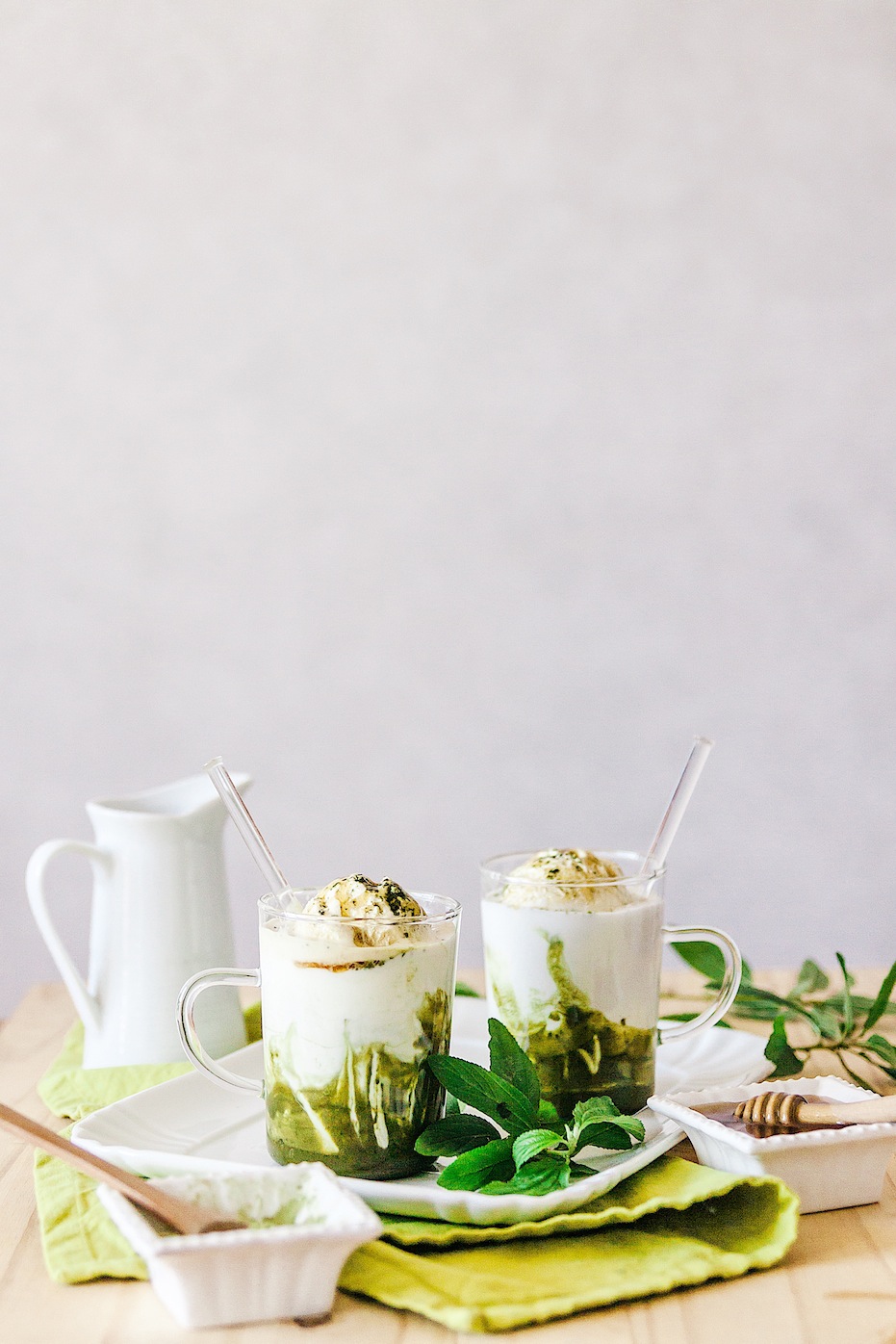 Món kem nổi này đúng ra mình cũng không biết gọi là một món đồ uống hay một món tráng miệng nữa vì vừa là kiểu sữa chua uống lại vừa có viên kem mát lạnh để dùng thìa xúc vài miếng nhâm nhi. Một ly kem nổi có hoà quyện đầy đủ vị chua dịu của sữa chua, cái đắng chát của trà xanh cùng với vị mật ong ngọt ngào và vị béo ngậy của viên kem.
