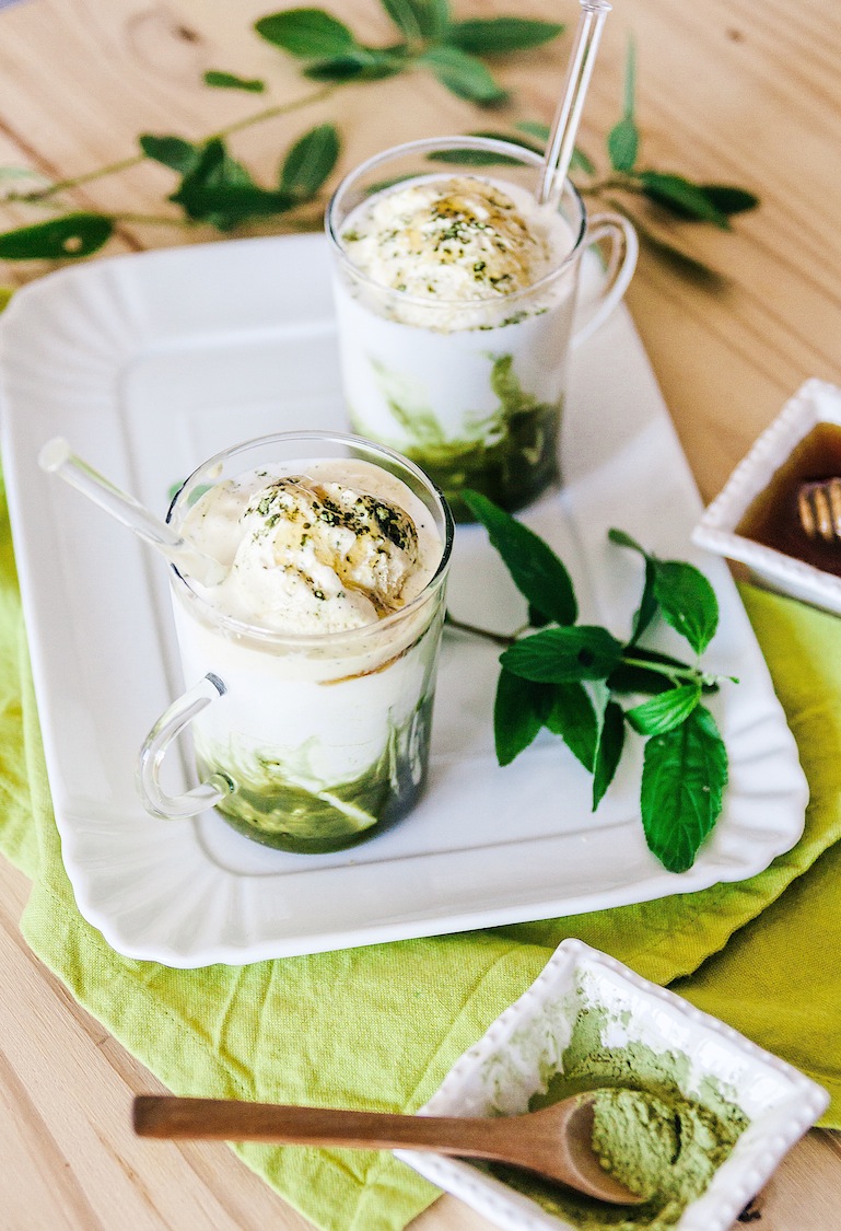 Nguyên liệu và cách làm của món này thì siêu đơn giản. Bạn cũng có thể biến tấu món kem nổi này với các nguyên liệu bạn có sẵn, ví dụ như thay thế nước cốt dừa bằng sữa tươi không đường, mật ong bằng si rô đường nâu hay thậm chí thay trà xanh bằng bột cà phê hoà tan chẳng hạn. Sữa chua mình dùng là loại sữa chua Hy Lạp bởi độ ngậy và sánh mịn của loại sữa chua này, bạn cũng có thể thay thế bằng sữa chua thường. Mình dùng loại kem vani cũng vì nhà đang có sẵn, nhưng bạn hoàn toan có thể thay thế bằng vị kem bạn cảm thấy phù hợp với các nguyên liệu còn lại như kem trà xanh, kem dừa hay kem sữa chua…