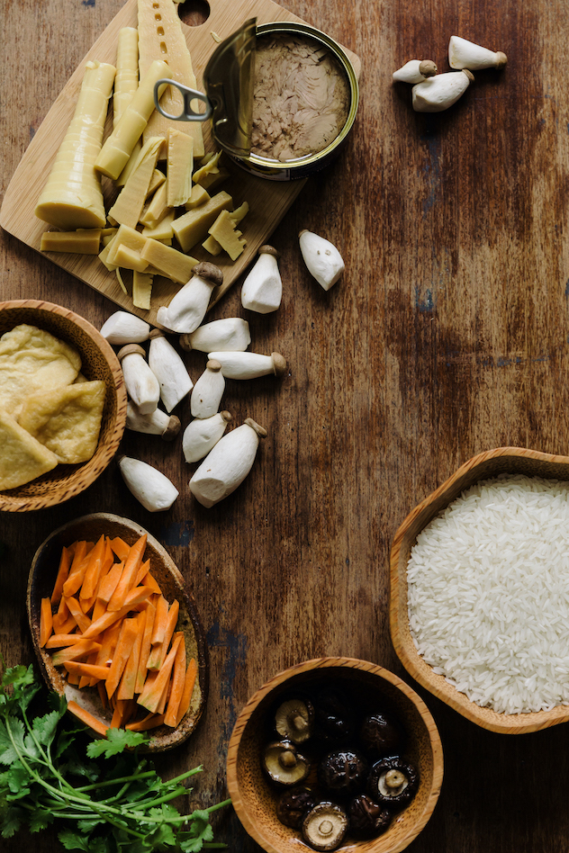 Mình đã có bài viết kỹ hơn về món cơm trộn kiểu Nhật takikomi gohan ở đây rồi, mọi người có thể đọc để biết kỹ hơn về các thành phần của món này nhé!