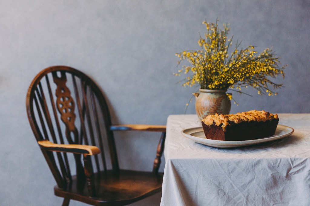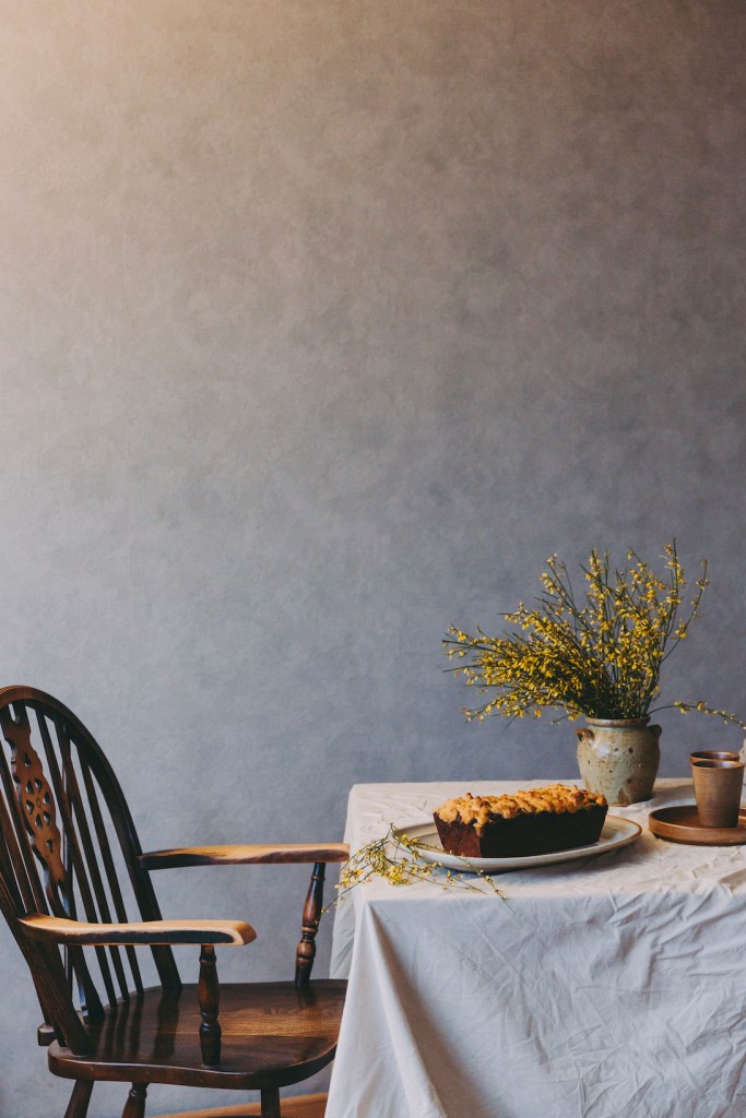 Mình vẫn nhớ hôm mình làm chiếc bánh này là một buổi chiều muộn, nên làm xong xuôi rồi mang ra chụp ảnh thì trời cuối thu đầu đông nên nhá nhem tối rất sớm. Khi bên ngoài khung cửa sổ rất to, bóng tối đang ào xuống với màn sương xanh xao lạnh lẽo thì mùi bánh thơm nức sực lên từ căn bếp cùng với ánh đèn vàng toả ra dìu dịu từ góc nhà thực sự làm mọi thứ như được phủ lên một lớp lụa ấm cúng và hạnh phúc vậy á.