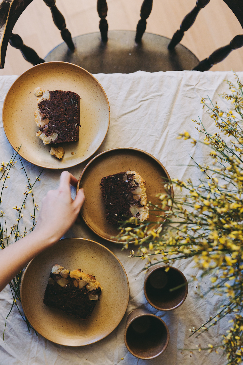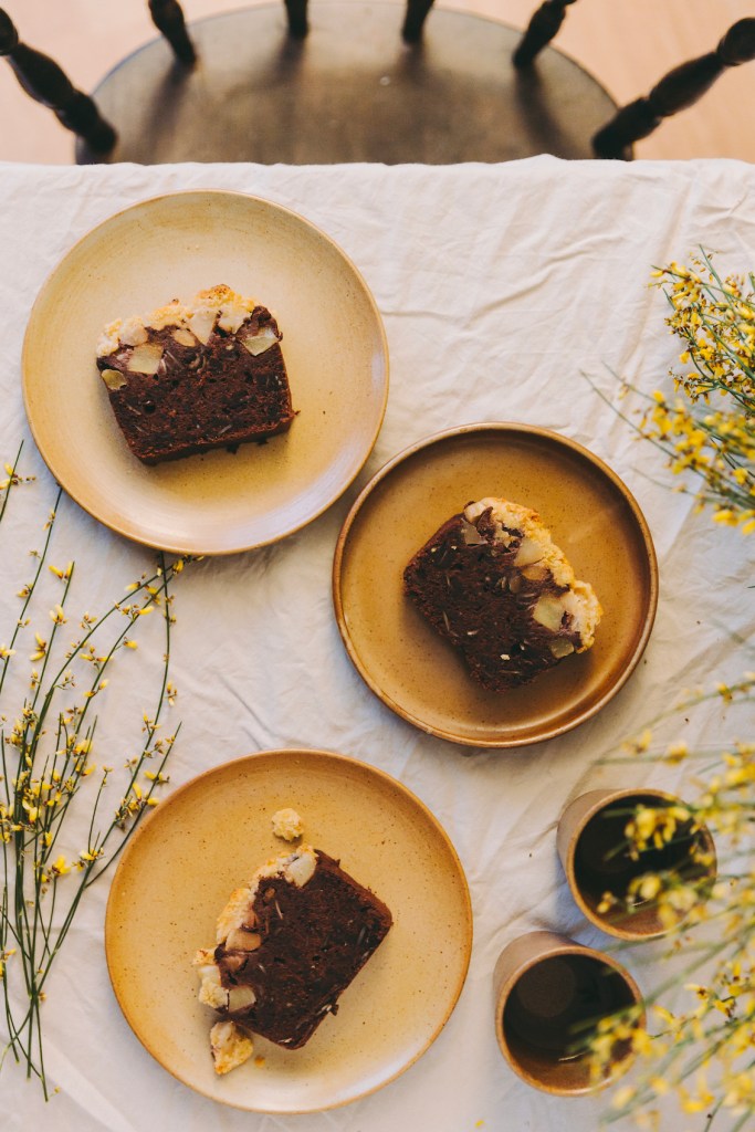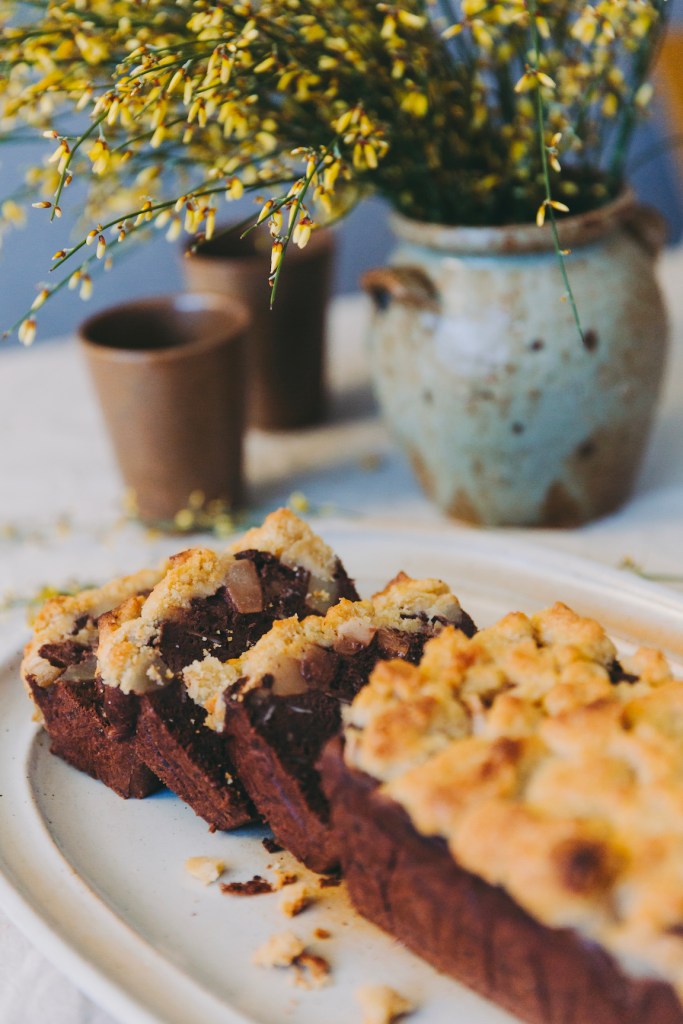 Bánh cake chocolate phủ crumble lê (Chocolate pear crumble cake)