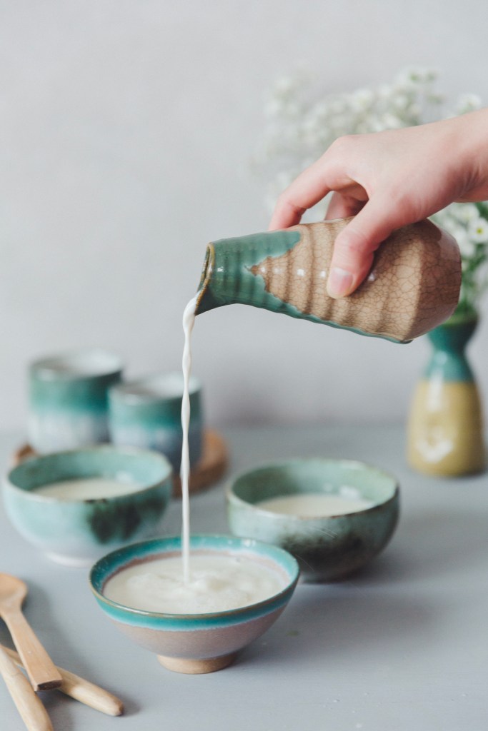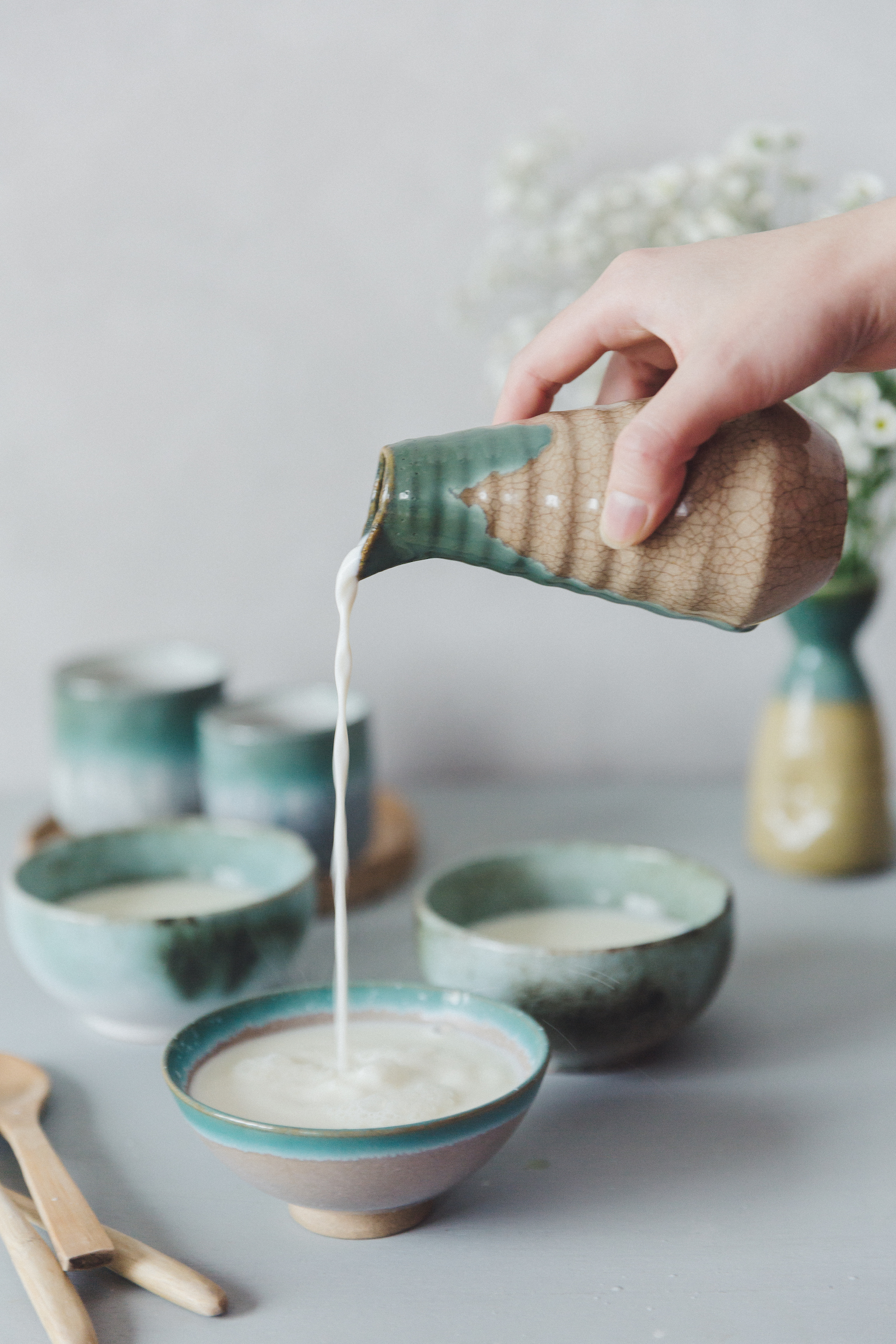 - ĐỔ SỮA TỪ TRÊN CAO: Giờ thì bạn đã hiểu mình đổ sữa từ trên cao như bạn thấy trong ảnh không phải là chỉ làm màu để chụp ảnh cho đẹp cho ngầu đâu mà việc đổ sữa từ trên cao như vậy sẽ giúp sữa trộn đều với phần nước gừng hơn, giúp cho phản ứng diễn ra nhanh và đều hơn.