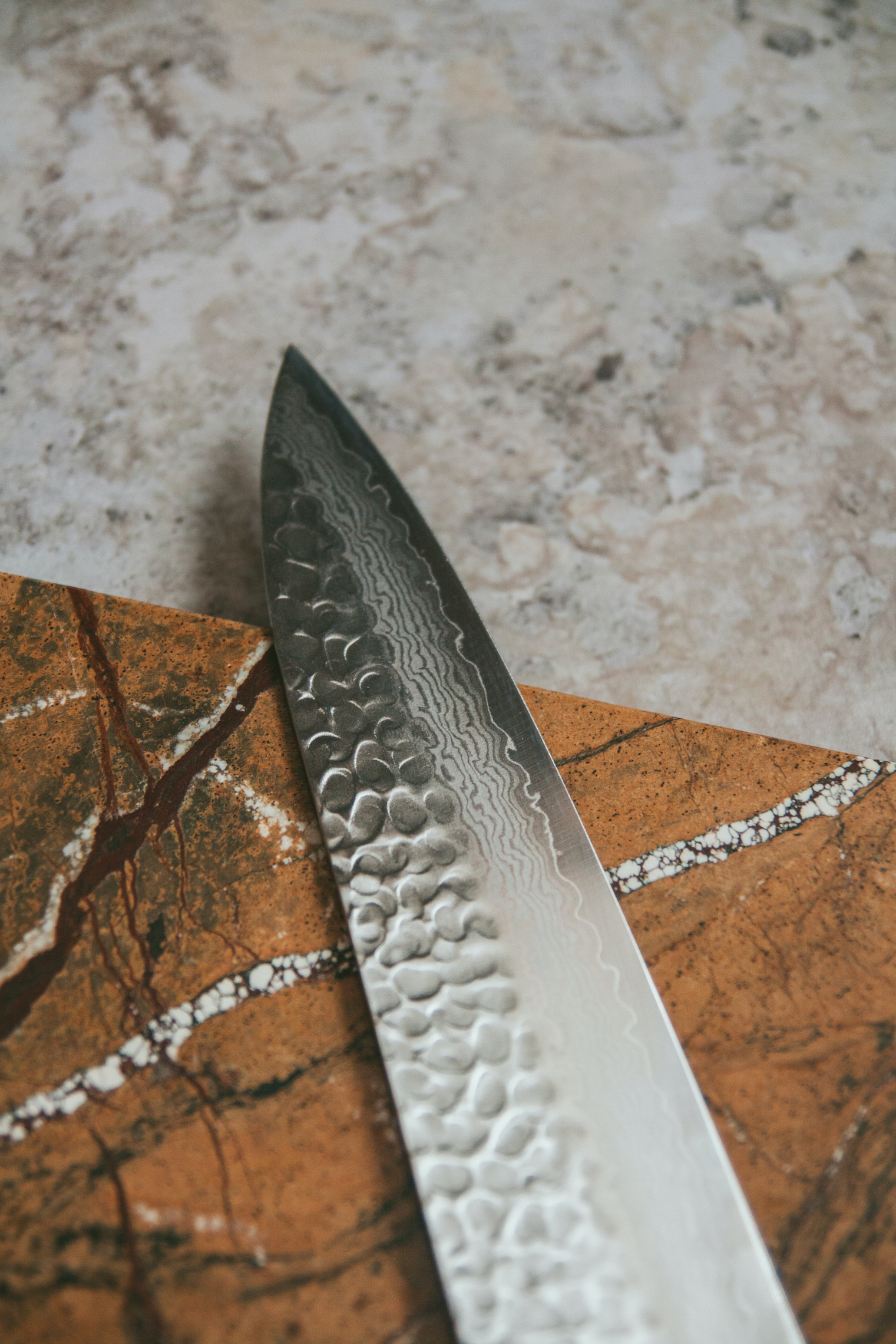 Lưỡi dao với những lớp thép uốn lượn đối lập với những vết rèn đanh và chắc, đẹp ơi là đẹp không biết tả thế nào!