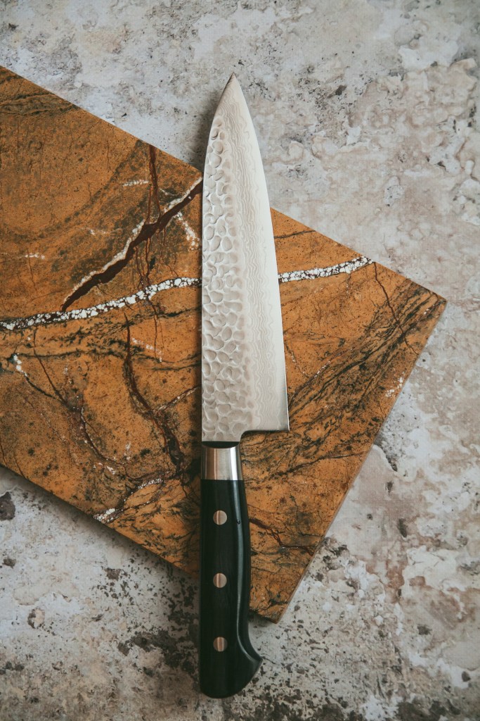 Không tìm hiểu quá nhiều về các loại dao Nhật, nên mình cũng chỉ nhận biết được một vài loại dao, như dao nào dùng để làm gì, dao nào có kỹ thuật rèn nhiều lớp… Nhưng nói chung nhìn chiếc nào cũng mê mẩn hết! Mình là người rất thích làm bếp theo kiểu truyền thống, nghĩa là ít sử dụng đồ công nghệ dù cũng biết thời nay nhiều món đồ thực sự giúp người đầu bếp giải phóng sức lực. Mình sẽ thích tự nhồi bột để cảm nhận được những thớ bột, tự nghiền các nguyên liệu bằng chày và cối…, hay đơn giản nhất là tự cắt thái những nguyên liệu chứ không muốn dùng đến các loại máy cắt. Vì thế nên trong bếp của mình không bao giờ có thể thiếu được những con dao thật sắc. Sau vài năm gắn bó với việc yêu thích làm bếp và viết blog, mình cũng đã thử qua kha khá các thể loại dao, nhưng cuối cùng vẫn thích nhất 2 loại: