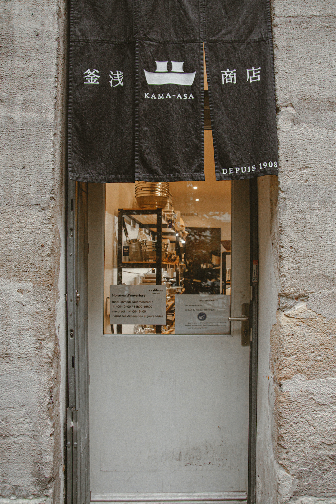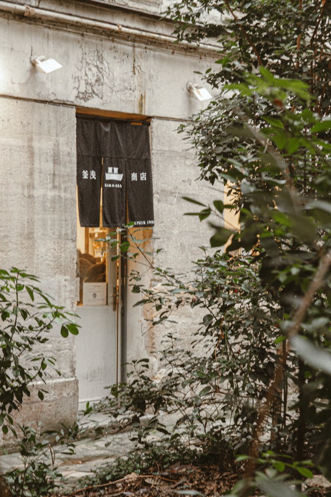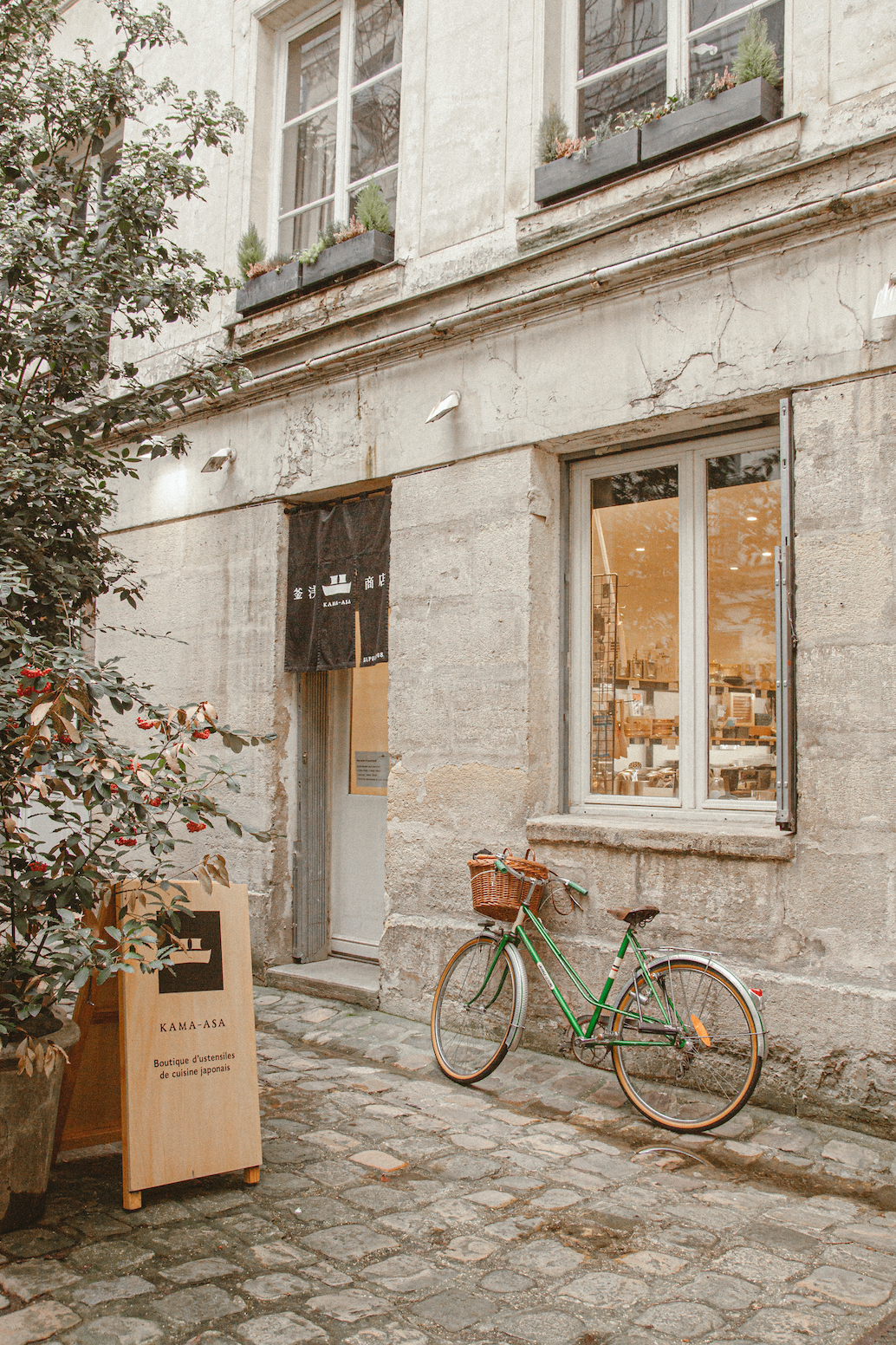 Kama-Asa cũng chỉ mới mở thêm một chi nhánh ở Paris cách đây vài năm. Cửa hàng nằm trong một sân vườn nhỏ xinh có lối đi lát đá, không gian bên trong cửa hàng thực sự cũng nhỏ xíu, với ánh đèn vàng dìu dịu như cách biệt với những ồn ào phố xá ngay bên ngoài. Mình đạp xe đến đây, kê tạm chiếc xe đạp bên khung cửa sổ, mà trong lúc lách cách khoá xe đã không thể nào dừng nhìn vào bên trong, trong lòng dấy lên vô vàn những sự phấn khích trước những món đồ bếp xinh đẹp bày bên trong khung cửa kia.