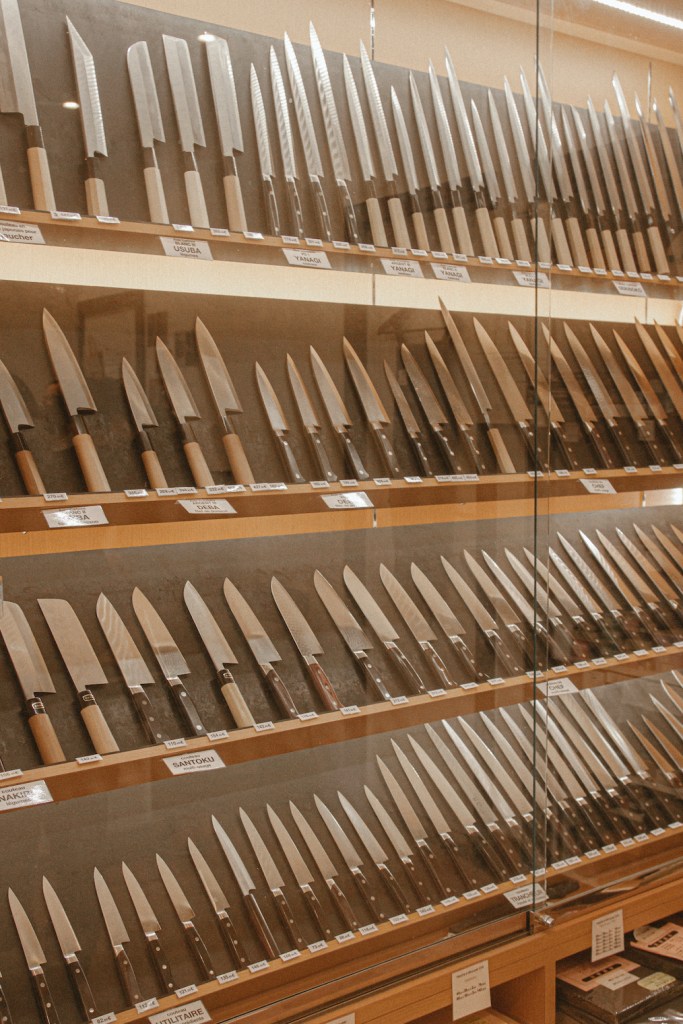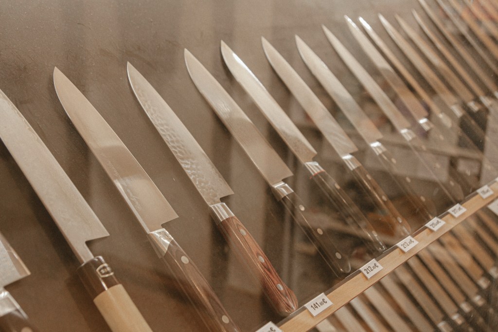 Thấy mình khá hoang mang hoa mắt trước rừng dao trước mắt, cô chủ liền hỏi mình mua dao để làm gì, rồi chọn cho mình khoảng chục con dao ra chiếc bàn giữa phòng. Cô bảo mình thử dao đi, thử cầm nắm, cắt thái xem tư thế cầm dao cũng như kích thước bàn tay của mình phù hợp với con dao nào nhất. Sau khi mình chọn được một loại dao ưng ý, cô chủ còn lấy trong kho ra 3 chiếc còn lại mà cửa hàng đang có, mở hết hộp ra để mình lại một lần nữa thử từng con dao một. Vì cô bảo dù có là cùng một loại thì những con dao này vẫn có sự khác biệt, nặng nhẹ khác nhau và mỗi con dao là một bản duy nhất!