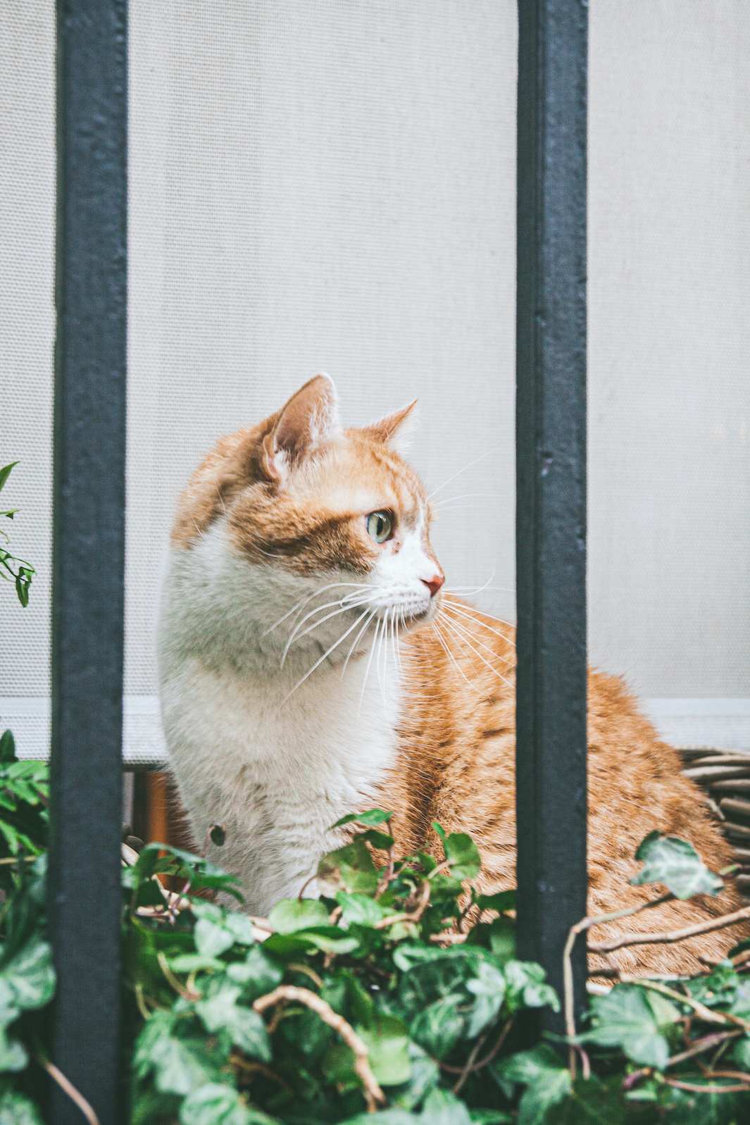 Quàng thượng nằm trong chiếc giỏ mây lót nệm ấm áp, dưới vòm lá thường xuân xanh mướt bên khung cửa sổ đậm chất Paris, bên cạnh không quên có chậu cỏ mèo để thỉnh thoảng quàng thượng gặm chơi xong high lên giật giật buồn cười lắm luôn!!!=))