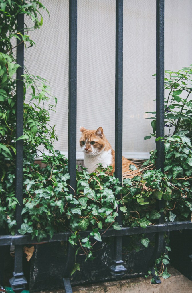 Và chưa hết! Nếu đi ra đường Rue de l’Abbaye, con đường bên cạnh của nhà thờ Saint Germain des Pres, phía bên đối diện của nhà thờ, và nếu bạn gặp may vào ngày hôm đó, bạn sẽ thấy một Quàng thượng có bộ lông vàng trắng đang nằm lim dim chờ bạn vuốt ve cưng nựng.