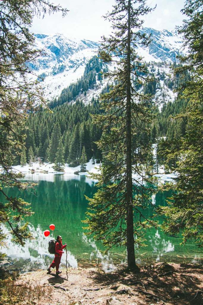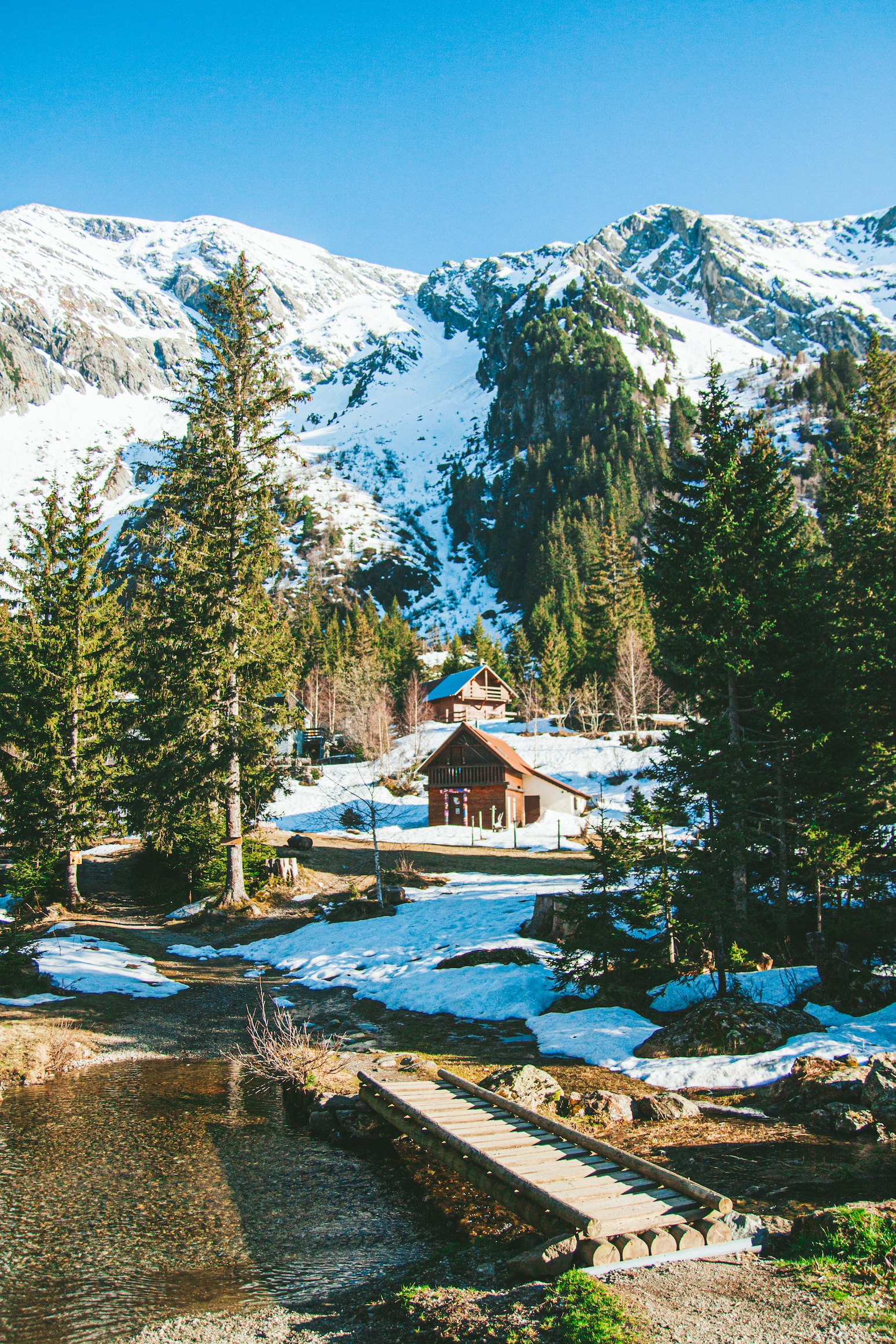 Vừa túc tắc đi vừa nghỉ ăn bánh uống nước, cuối cùng đến tầm 5h chiều bọn mình cũng đến hồ Poursollet. Từ xa xa mình đã hét toáng lên khi thấy mặt hồ xanh ngắt ẩn hiện lấp ló giữa những tán thông. Xung quanh hồ rải rác vài căn hameau – là một cụm những căn nhà, vì là một cụm nhỏ xíu thôi nên còn không được gọi là village – làng, và thường được dùng là nơi để chăn nuôi gia súc hơi cách xa khu cư dân sinh sống một chút. Thời nay thì khu này chắc đã thành những căn nhà nghỉ dưỡng, nhưng khi đi qua mình vẫn thấy những chuồng để nuôi gia súc được rào bằng gỗ rất đáng yêu, cảm giác như đang lạc vào khu làng nhỏ từ thế kỷ trước vậy.