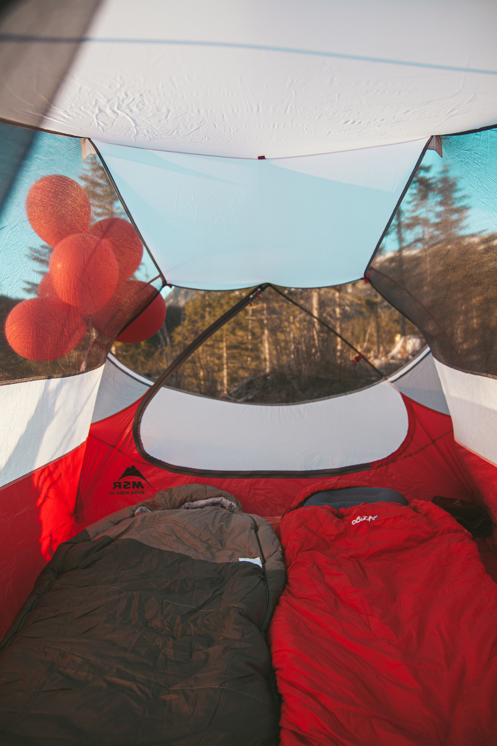 Nằm chơi một lúc rồi bọn mình cũng bắt đầu dựng lớp trong của lều, để có thể bỏ đồ đạc từ trong ba lô vào trong lều, chuẩn bị nệm và túi ngủ, sắp xếp các vật dụng cần thiết cho buổi tối vào bên trong lều như bàn chải đánh răng, đèn, quần áo ấm, nước uống….