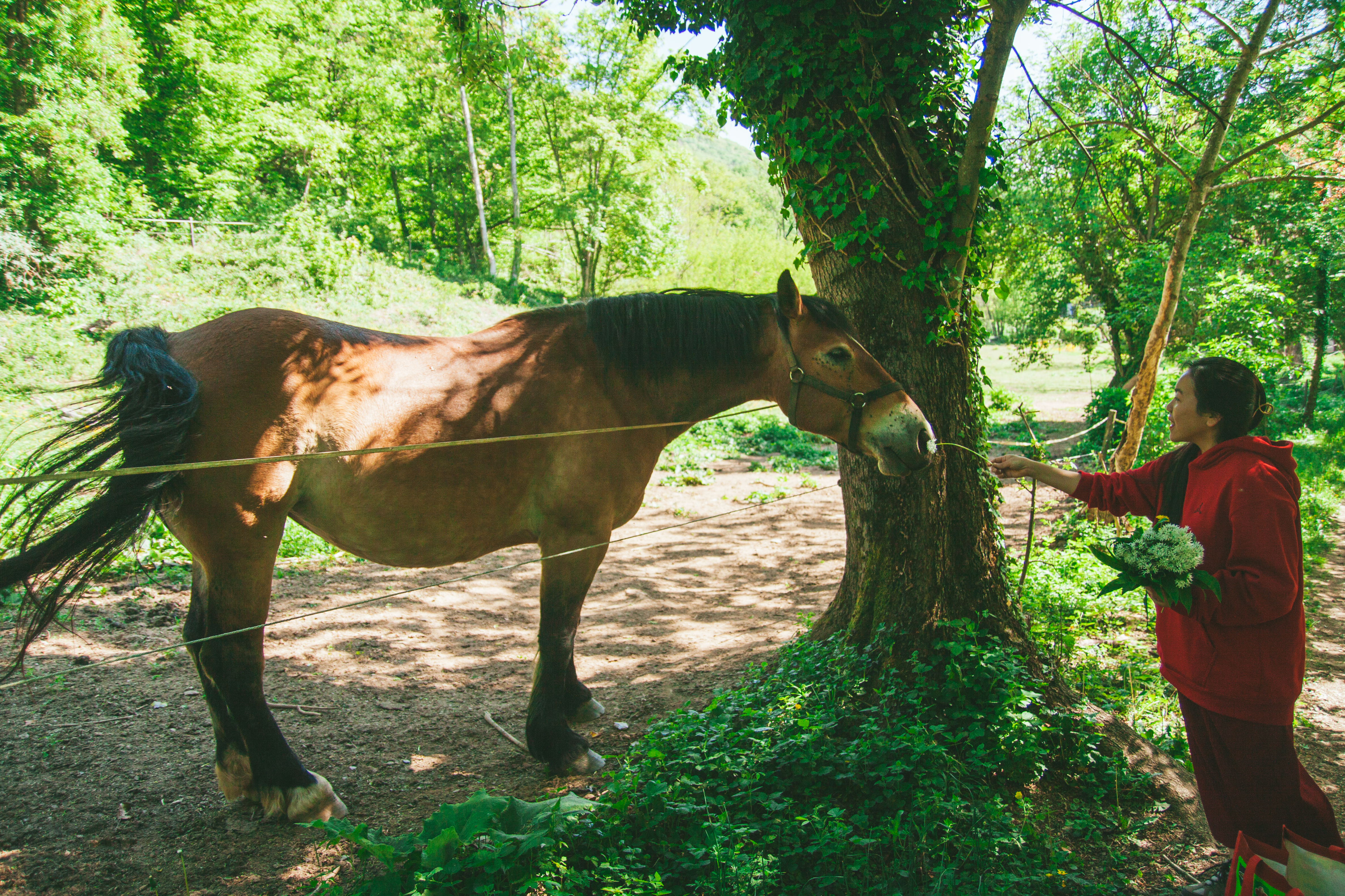 Trên đường đi còn gặp bạn ngựa ra chào, mời bạn một bông bồ công anh thì bạn ăn lấy ăn để nhai rột rột nhìn rõ là buồn cười!!^^