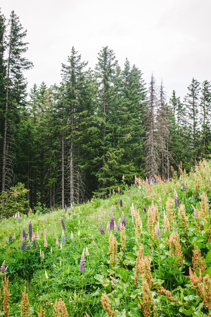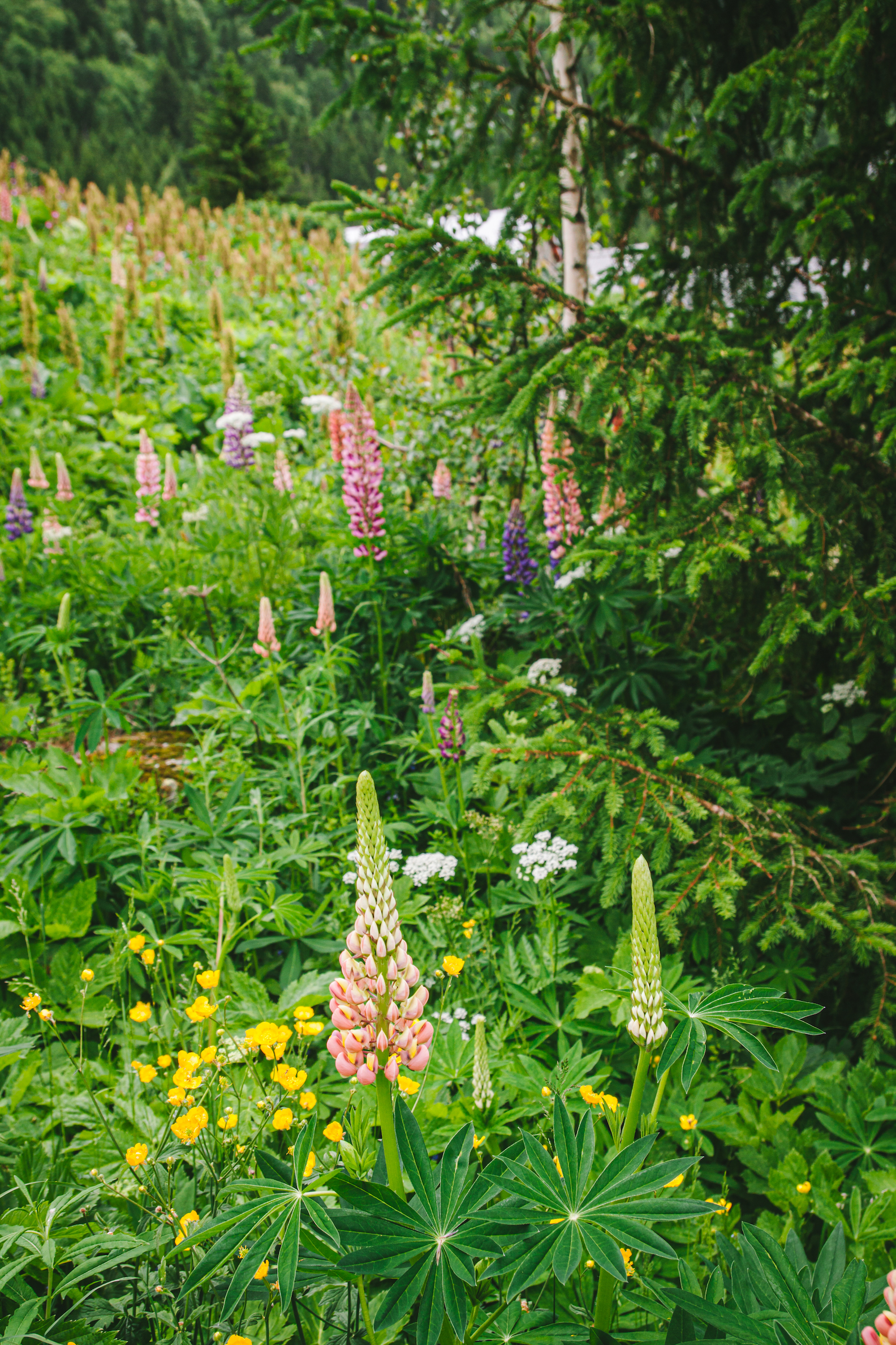 Khác với màu cỏ úa vàng chen lẫn những mảng tuyết cách đây hơn 1 tháng, khung cảnh lúc này xanh mướt um tùm, với những cụm hoa đậu lupin rực rỡ điểm đầy màu sắc khắp nơi.