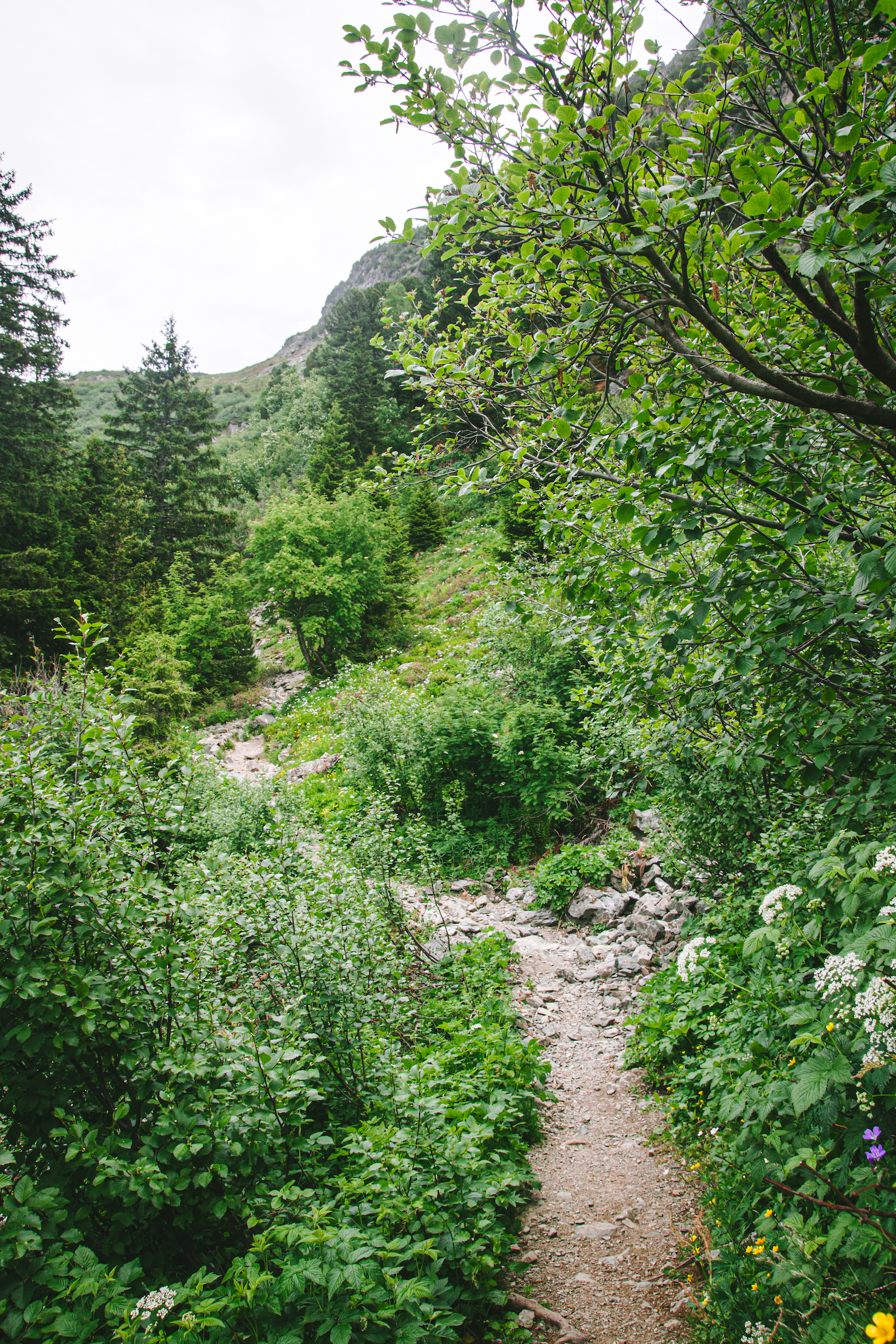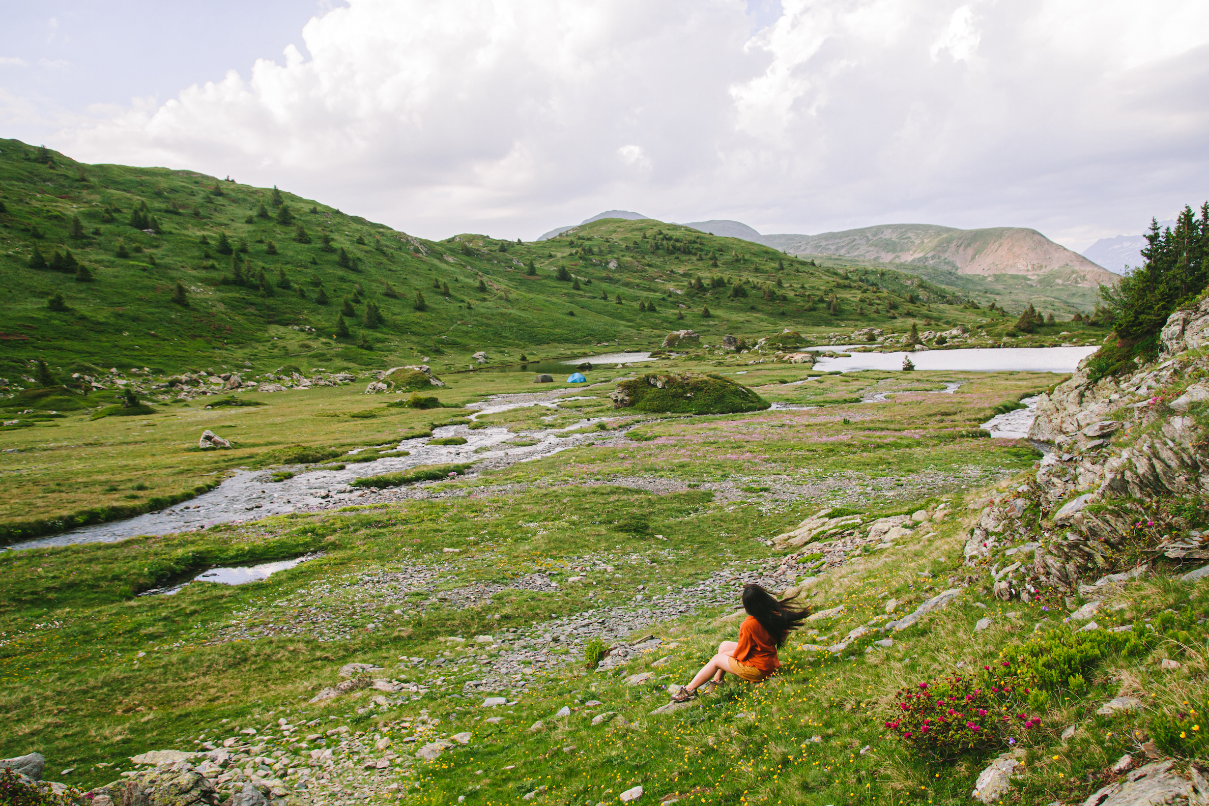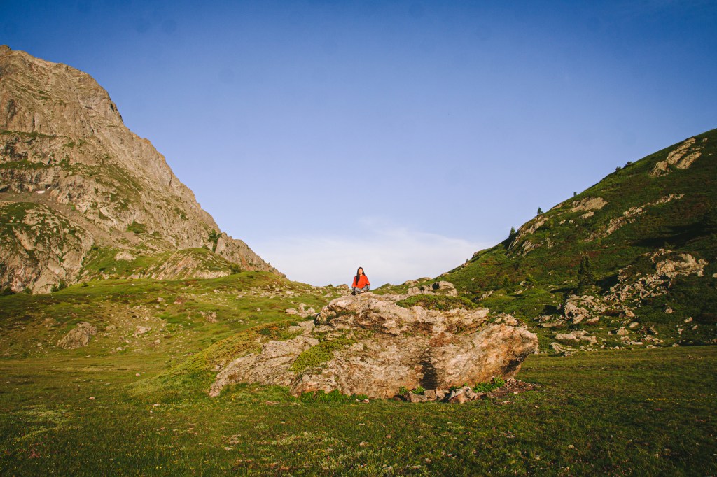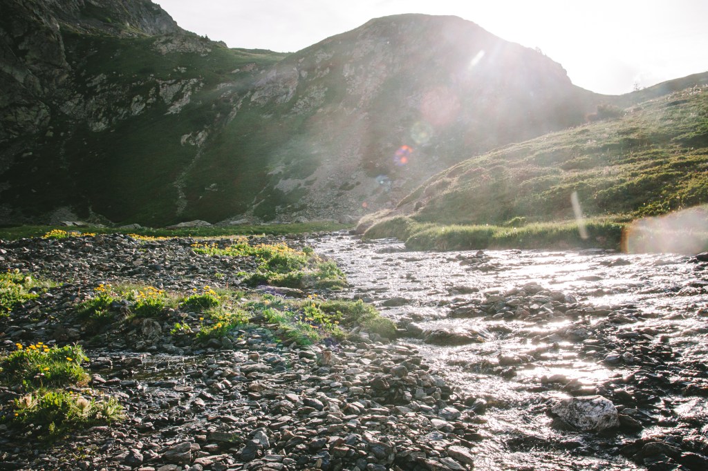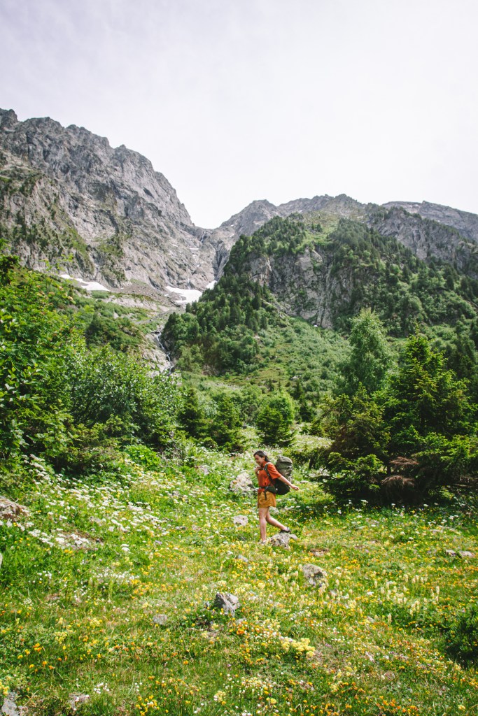 Sau khi thuận lợi đến parking Poursollet, sau khi bắt đầu nhanh chóng mỗi người chuẩn bị và kiễm tra kỹ càng lại đồ đạc và ba lô của mình, bôi kem chống nắng, chia nước và đồ ăn của mỗi người, bọn mình bắt đầu lên đường. Do vừa mới đi tháng trước nên mình phăm phăm dẫn đường cho mọi người đi qua hameau Poursollet để đến điểm bắt đầu cung đường lên hồ Fourchu.