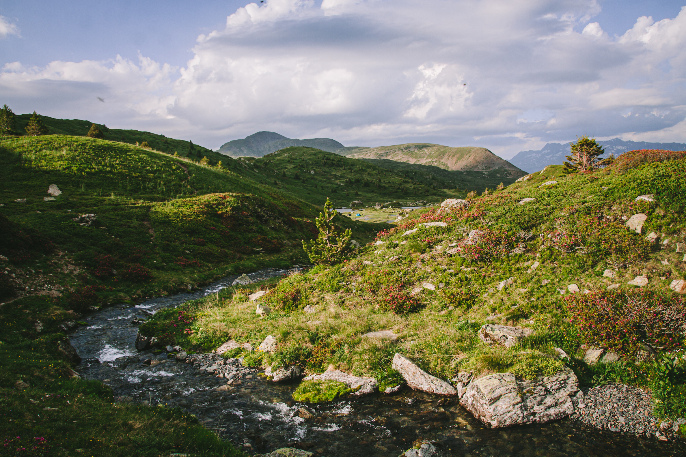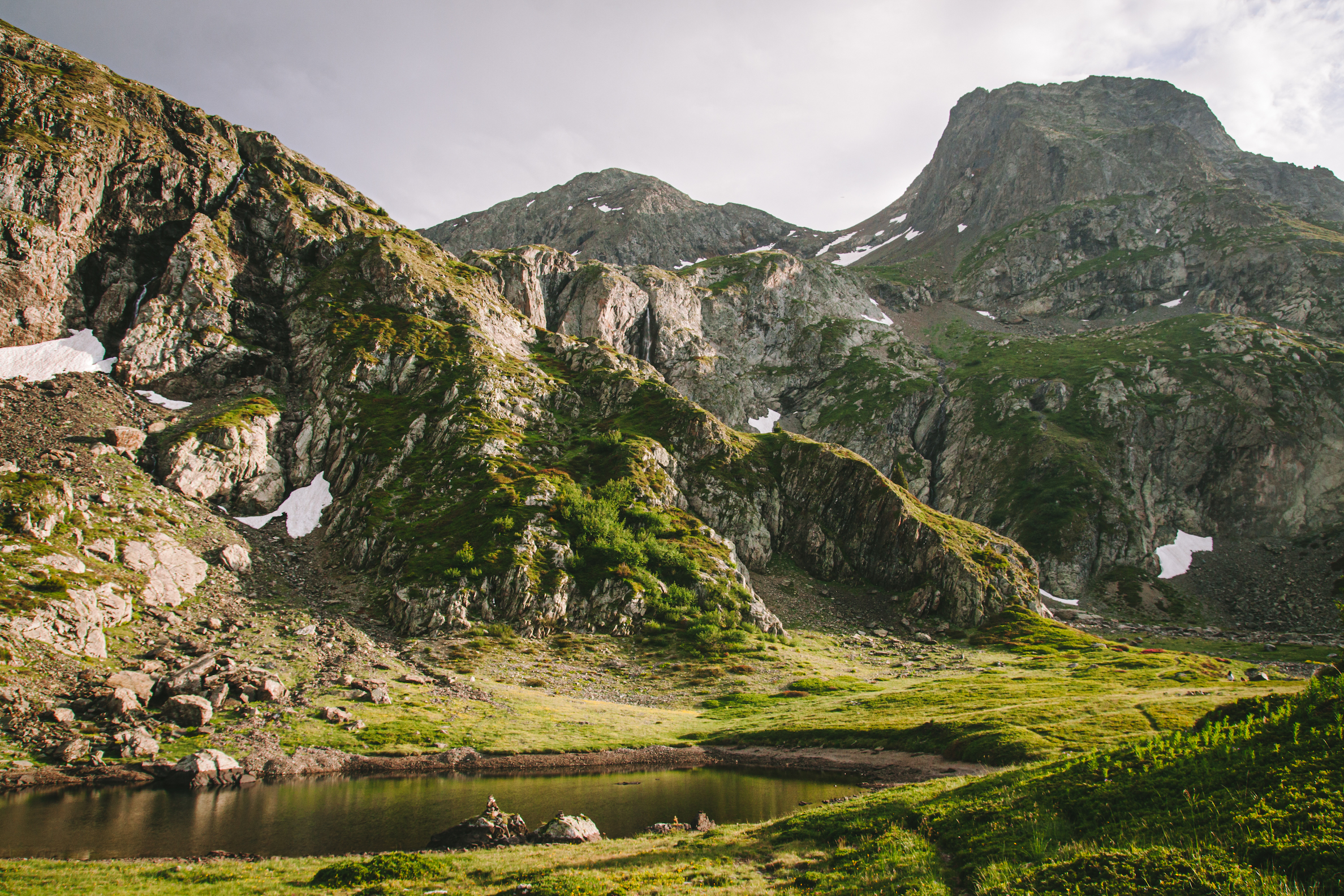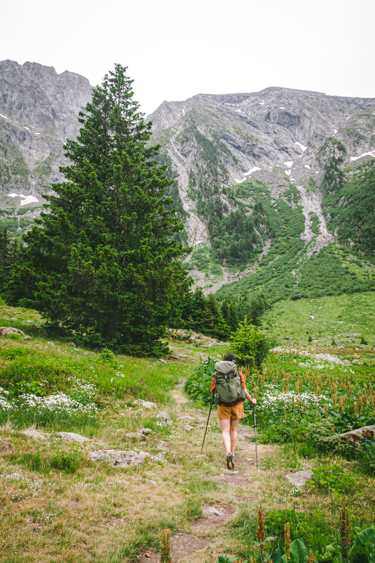 Sau khi thuận lợi đến parking Poursollet, sau khi bắt đầu nhanh chóng mỗi người chuẩn bị và kiễm tra kỹ càng lại đồ đạc và ba lô của mình, bôi kem chống nắng, chia nước và đồ ăn của mỗi người, bọn mình bắt đầu lên đường. Do vừa mới đi tháng trước nên mình phăm phăm dẫn đường cho mọi người đi qua hameau Poursollet để đến điểm bắt đầu cung đường lên hồ Fourchu.