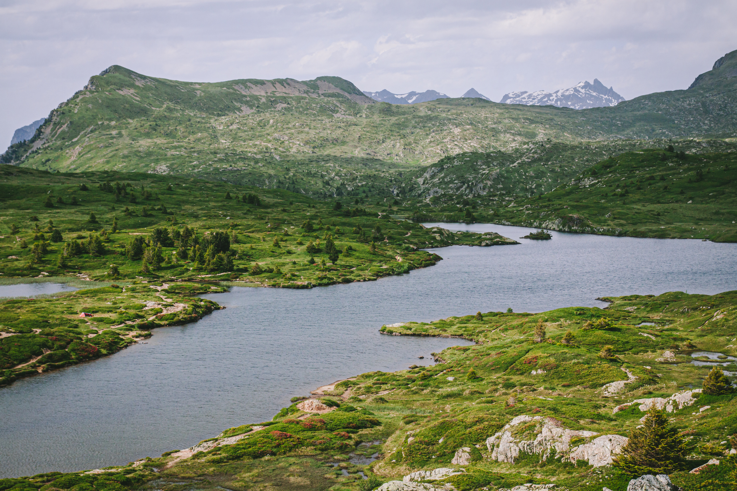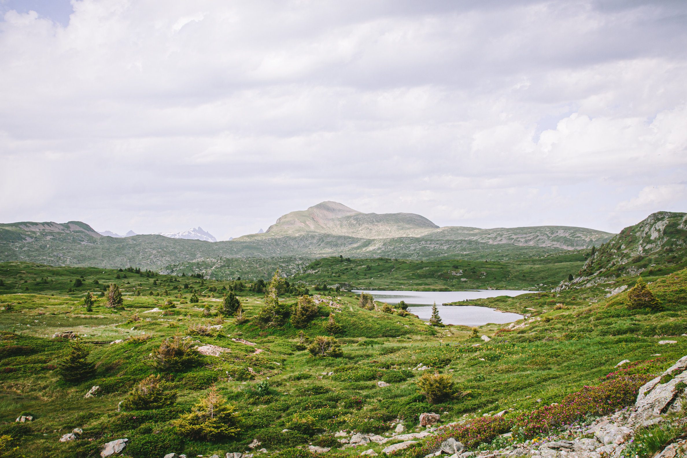 Cuối cùng thì cũng xuống đến hồ Poursollet. Tuy mùa hè hồ vẫn xanh ngắt nhưng mình có phần thích hồ này vào đầu xuân hơn, khi đằng sau những rặng thông là trập trùng những ngọn núi còn phủ tuyết trắng xoá.
