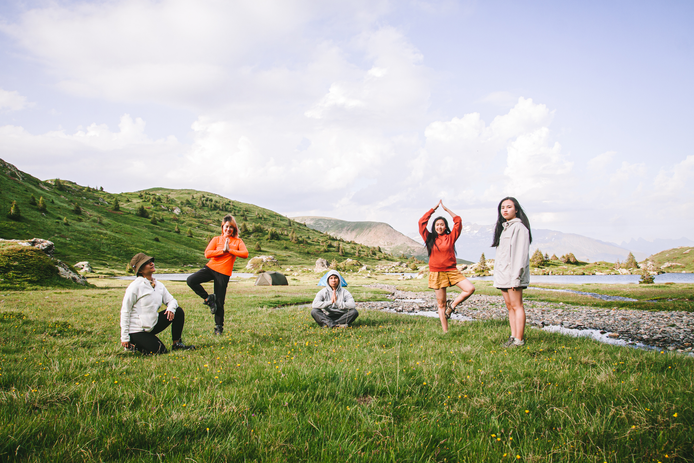 Vừa đến mặt hồ, việc đầu tiên là bọn mình bỏ cái ba lô nặng trĩu xuống, ra bờ suối rửa chân tay mặt mũi bằng làn nước tuyết tan mát lạnh khiến cho ai cũng tỉnh táo hẳn sau cả ngày dài mệt mỏi. Mình trải tấm lót dưới lều lên mặt cỏ rồi cả bọn nằm xuống tắm nắng, cười đùa và tận hưởng từng chút từng chút khung cảnh tuyệt vời này. Mình cởi giày bước chân trần trên mặt cỏ mát rượi, để cho gió núi thổi tung từng thớ tóc, cho làn da đắm chìm trong ánh mặt trời dù có chói chang, và hít thở thật sâu, lấp đầy lồng ngực bằng thứ không khí trong vắt. Mình luôn tin rằng khi tiếp xúc vật lý trực tiếp với thiên nhiên như thế, sẽ tiếp nhận được nguồn năng lượng dồi dào và tinh sạch nhất của nắng, của gió, của đất trời. Vậy nên khi leo núi, mỗi khi mệt quá mình thường cởi giày đặt chân trần lên một phiến đá hay áp tay vào một thân cây…, để cảm nhận được nguồn năng lượng có thể đánh thức được từng giác quan của cơ thể như thế!