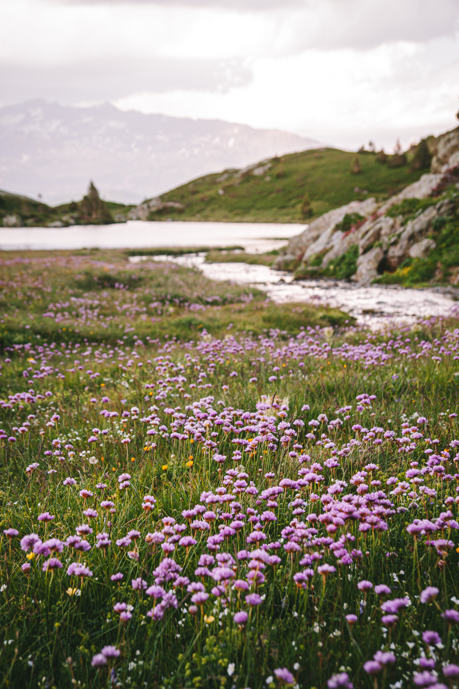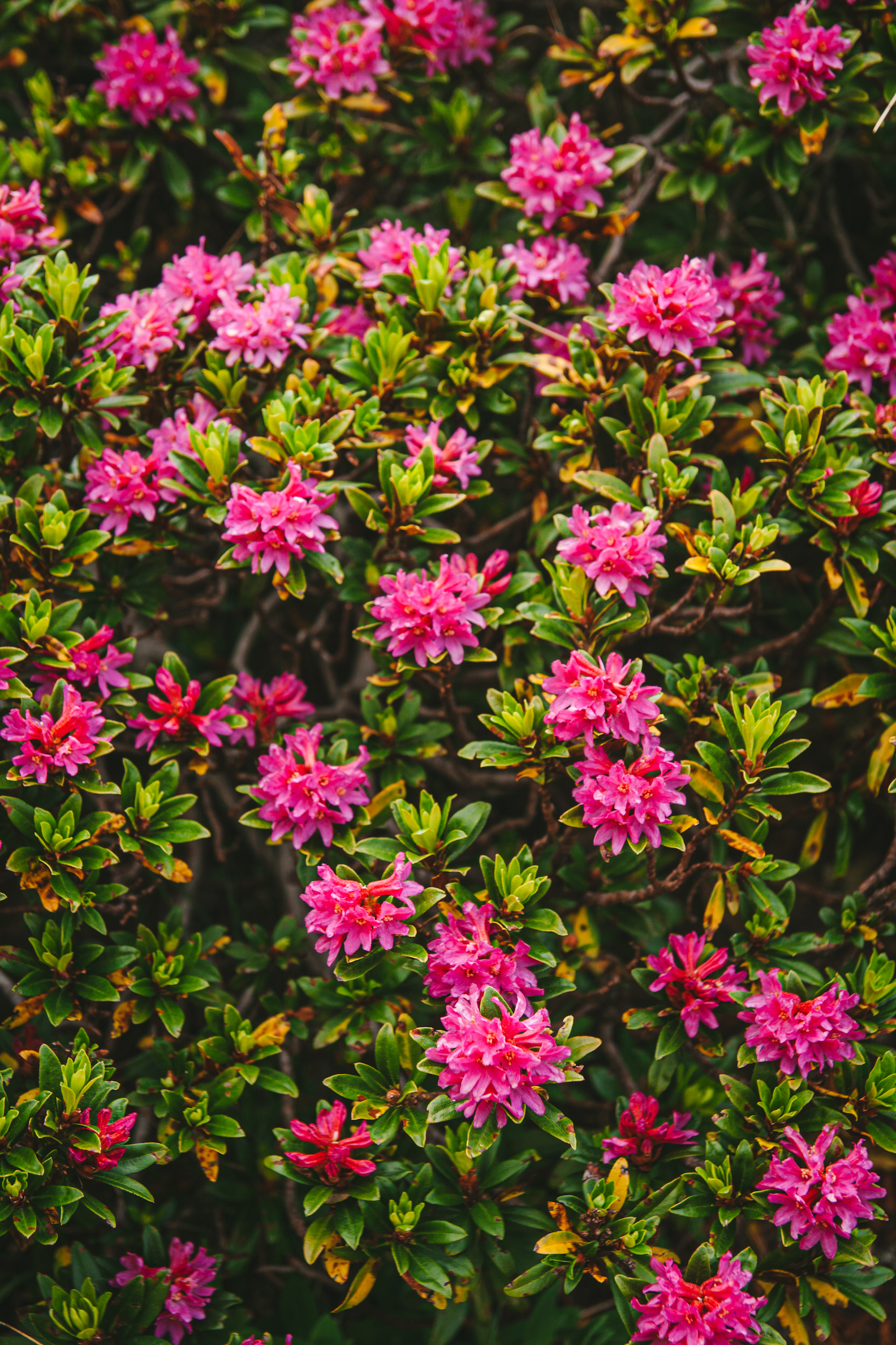 Mùa xuân cũng là mùa các dãy núi thuộc dãy Alpes được phủ kín bởi những cụm hoa đỗ quyên núi (azalée hoặc rhododendron) với sắc hồng rực rỡ.