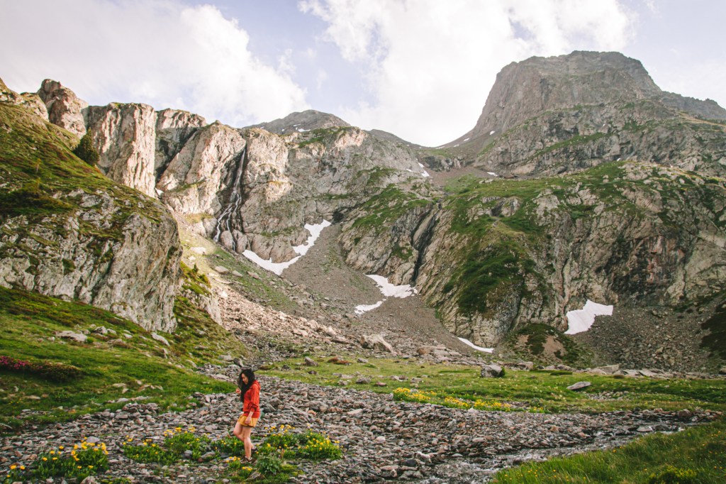 Thế là mình đi men sang hướng phía bên phải theo tiếng gọi của đồng đội, đi qua một mảng núi đá với những dòng thác nhỏ chạy xuống từ những mảng băng đang tan dưới ánh nắng mùa hè, qua một triền đồi thoai thoải nữa…