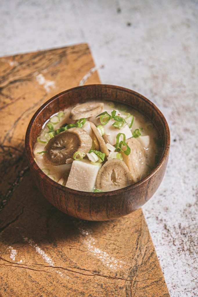 Từ ngày phát hiện ra khoai sọ cực hợp với súp miso, món này thường xuyên có mặt trong bữa ăn nhà mình vào những ngày lành lạnh. Bạn có thể thay thế khoai sọ bằng khoai môn cũng khá là hấp dẫn vì cả hai loại khoai đều vừa bùi những vẫn có độ dẻo dẻo rất ngon.
